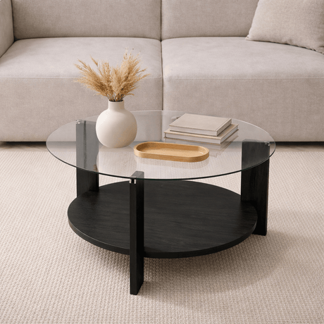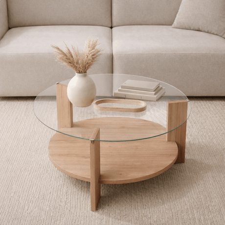 1.309,00 złUnit price /UnavailableAris Round Coffee Table 75 cm Tinted Glass - Melamine Oak