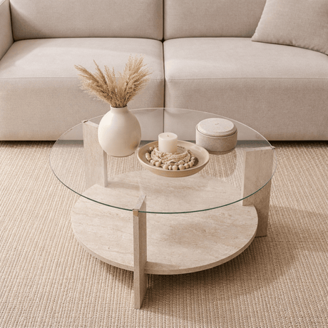 3.492,00 złUnit price /UnavailableCairo Coffee Table Round Ø75 cm Travertine - Glass 75x75x40 cm