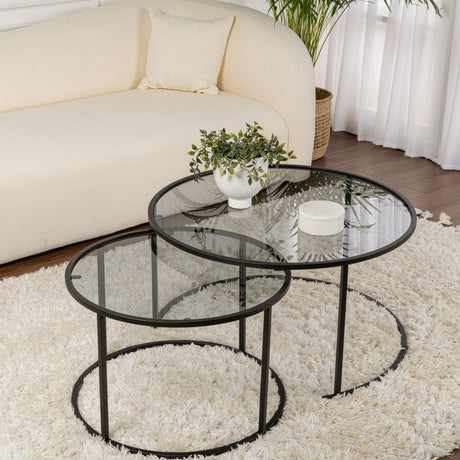 1.116,00 złUnit price /UnavailableModern Round Coffee Table Set of 2 Uru Black - Transparent Glass - 80/60 cm