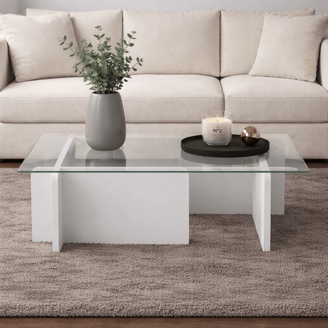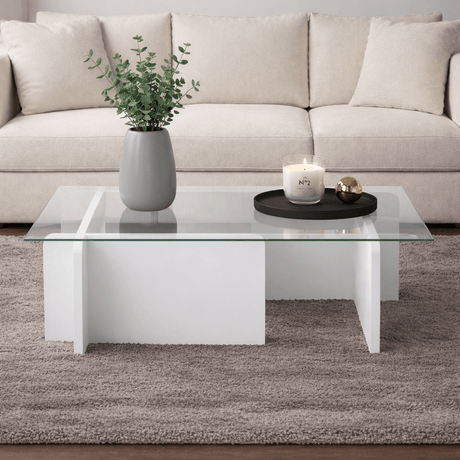 1.481,00 złUnit price /UnavailableRectangular Modern Coffee Table Vetroni White Wood Look - Glass - 105x65 cm