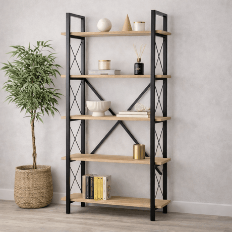 1.288,00 złUnit price /UnavailableIndustrial Bookcase Ely Oak Melamine - Black Frame - 180x90 cm