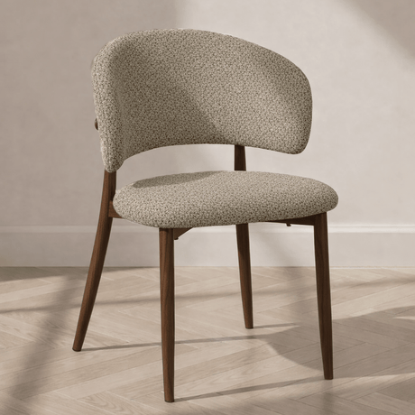 691,00 złUnit price /UnavailableJiro sand-coloured bouclé dining chair – walnut-effect frame – Japandi