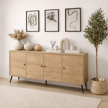 2.366,00 złUnit price /UnavailableCalvin Sideboard Oak Look with Soft-Close 180 cm Melamine – Four Doors