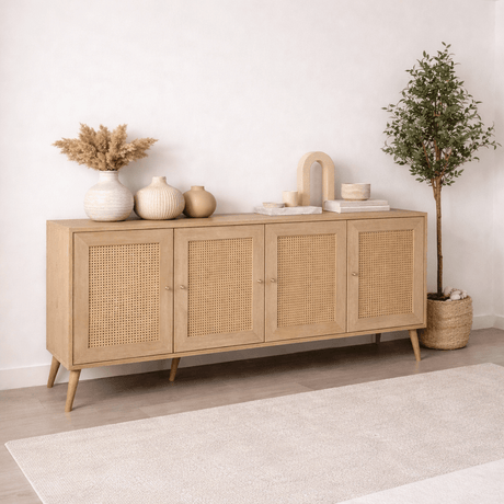3.312,00 złUnit price /UnavailableCalvin Sideboard Rattan–Oak Look with Soft-Close 180 cm Melamine
