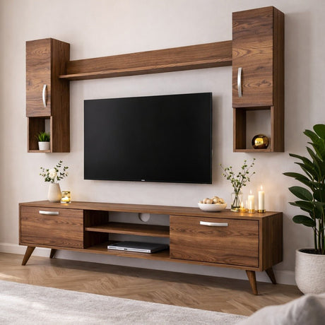 2.881,00 złUnit price /UnavailableTV furniture set Gebze Walnut White Melamine 180x35x47 cm