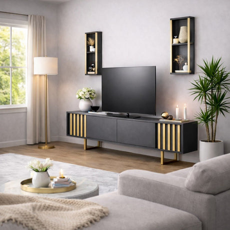 2.182,00 złUnit price /UnavailableTV furniture set Gold Line Anthracite Black Melamine 180x48x30 cm