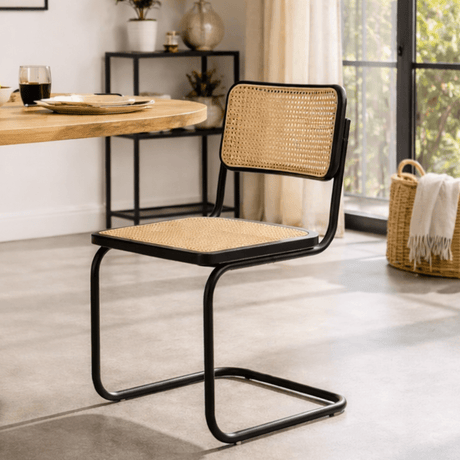 Buisframe eetkamerstoel Vester zwart metaal met bamboe webbing - Zonder Armleuningen
