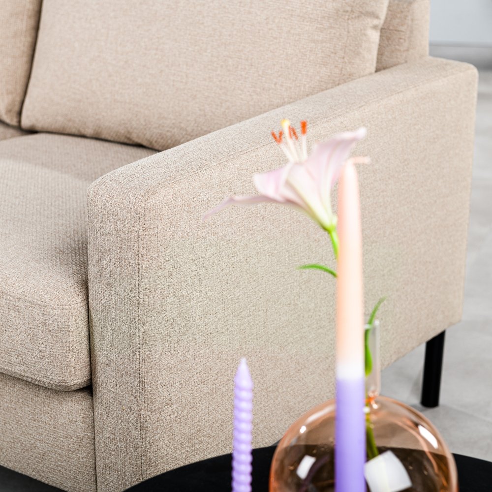 Looking for a stylish and modern addition to your living room? The 3-seater corner sofa Blair is exactly what you need! With its coarse woven fabric, this corner sofa radiates a contemporary charm. The corner sofa is perfect for pleasant evenings with friends or cozy film evenings with the family. Thanks to the chaise longue that can be placed both left and right, the sofa fits into every living room. The dimensions of 200 cm wide, 133 cm deep and 82 cm high ensure sufficient seating space for three people. The colors of the corner sofa ensures a fresh and trendy look. Prefer a different color? No problem, the Blair is also available in a different color! The seat depth of 50 cm and seat height of 46 cm ensure optimum seating comfort. The loose cushions from the corner sofa not only provide extra comfort, but also give the sofa a playful look. In short, the 3-seater corner sofa Blair is the perfect choice for those looking for a combination of comfort, style and modern design.