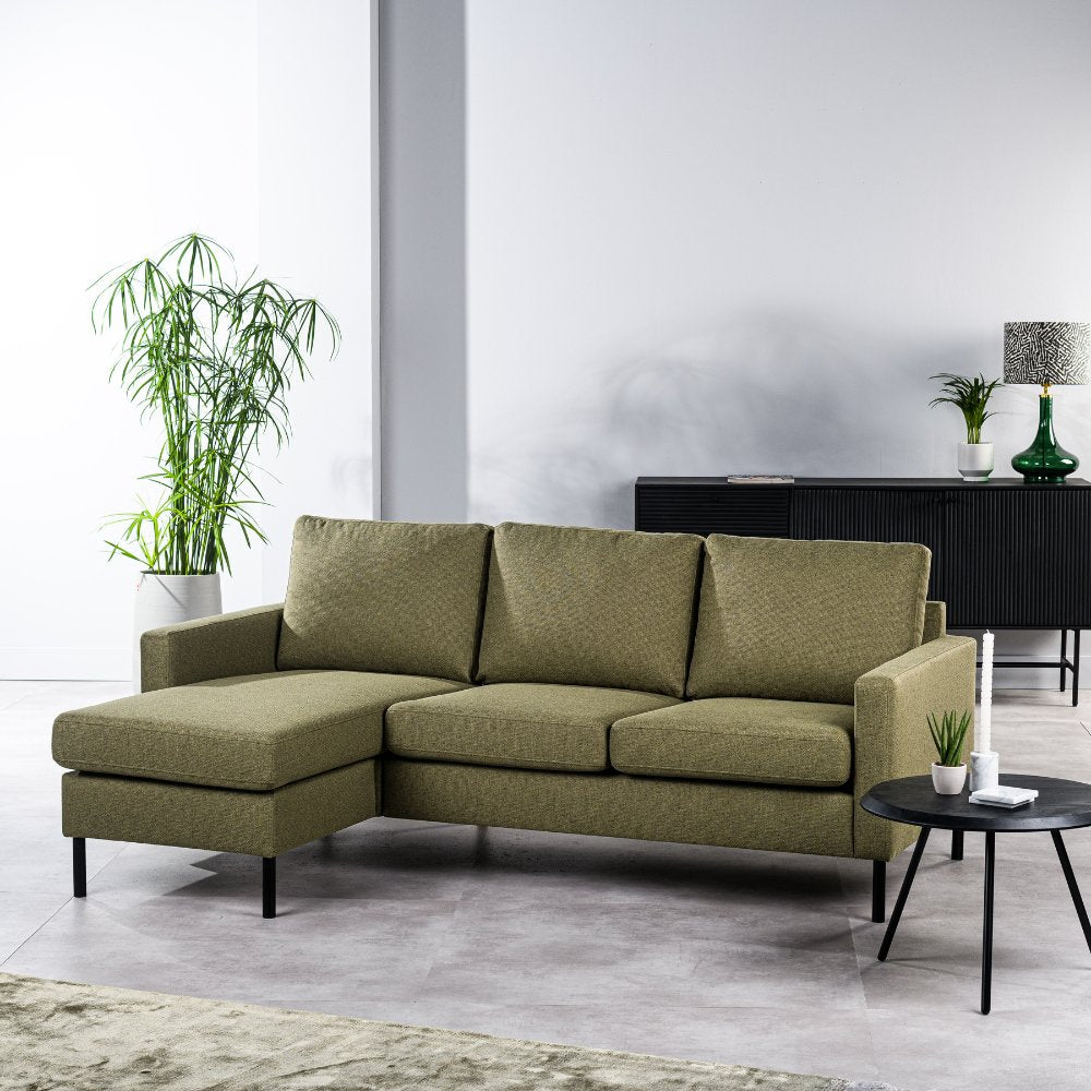 Looking for a stylish and modern addition to your living room? The 3-seater corner sofa Blair is exactly what you need! With its coarse woven fabric, this corner sofa radiates a contemporary charm. The corner sofa is perfect for pleasant evenings with friends or cozy film evenings with the family. Thanks to the chaise longue that can be placed both left and right, the sofa fits into every living room. The dimensions of 200 cm wide, 133 cm deep and 82 cm high ensure sufficient seating space for three people. The colors of the corner sofa ensures a fresh and trendy look. Prefer a different color? No problem, the Blair is also available in a different color! The seat depth of 50 cm and seat height of 46 cm ensure optimum seating comfort. The loose cushions from the corner sofa not only provide extra comfort, but also give the sofa a playful look. In short, the 3-seater corner sofa Blair is the perfect choice for those looking for a combination of comfort, style and modern design.