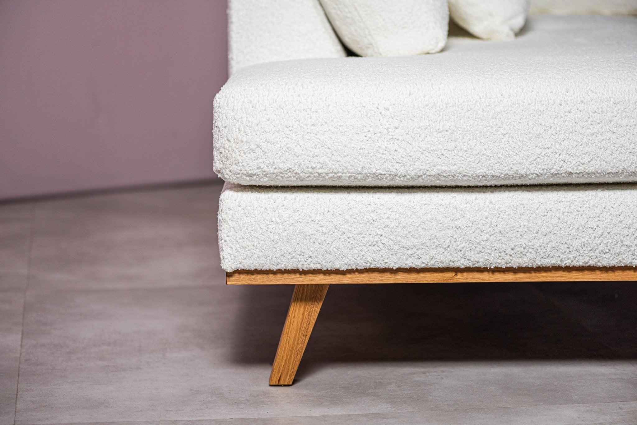 Bouclé, a durable and luxurious fabric with soft texture and loops, adds comfort and style to furniture, making it perfect for a warm and chic look in any interior.