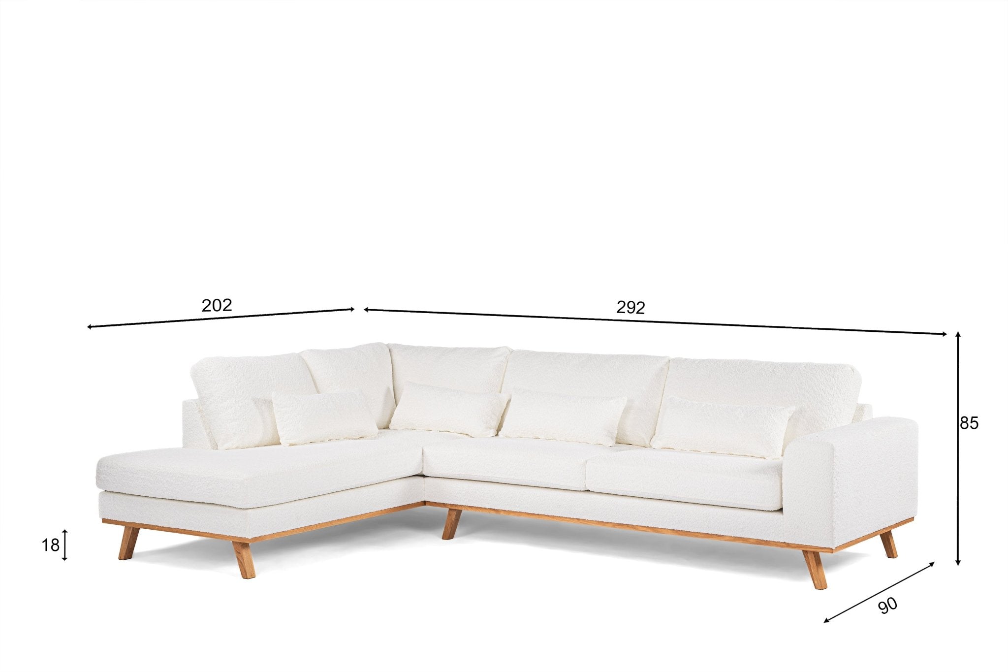 Description and specifications of 3-seater corner sofa jolie bouclé white