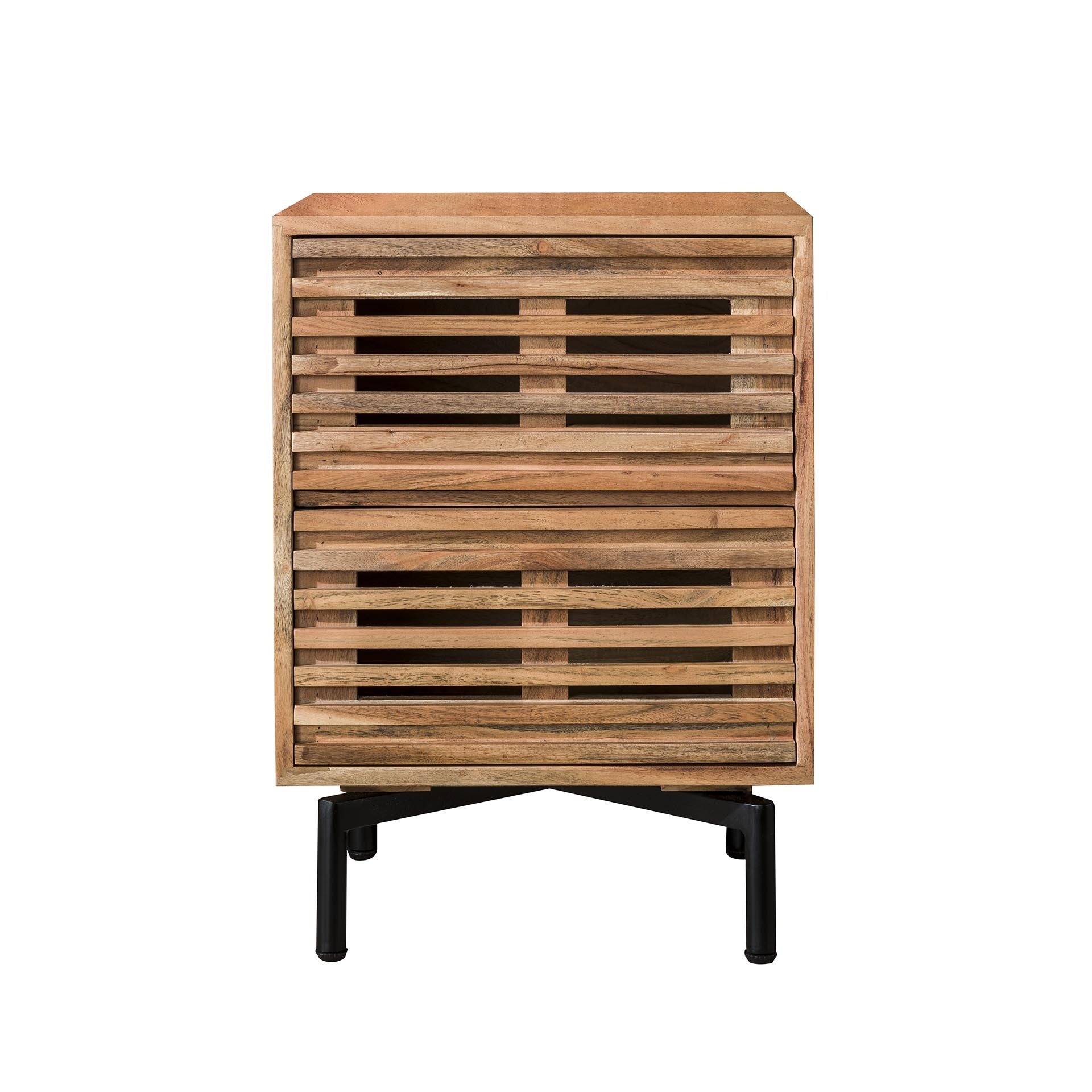 The bedside table Monja is made of solid mango wood. The cupboard has a chic striped design, giving the bedside table a tough and lively appearance.