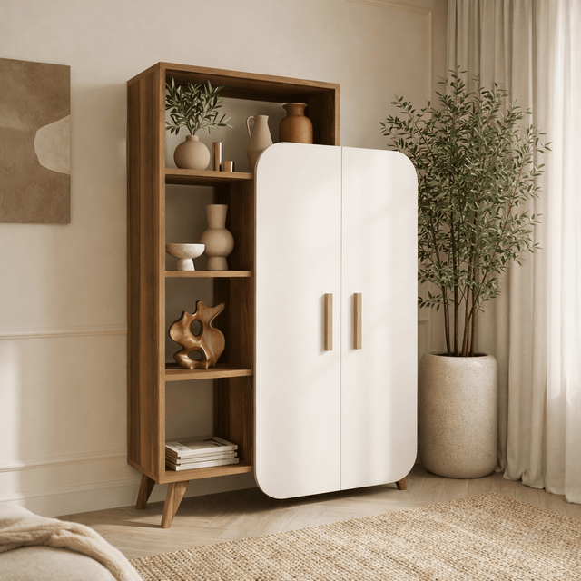 The bookshelf features a beautiful combination of walnut and white colors, creating a harmonious contrast that fits any interior style. Whether you have a traditional or modern decor, this bookshelf seamlessly integrates and adds a touch of sophistication to your space.