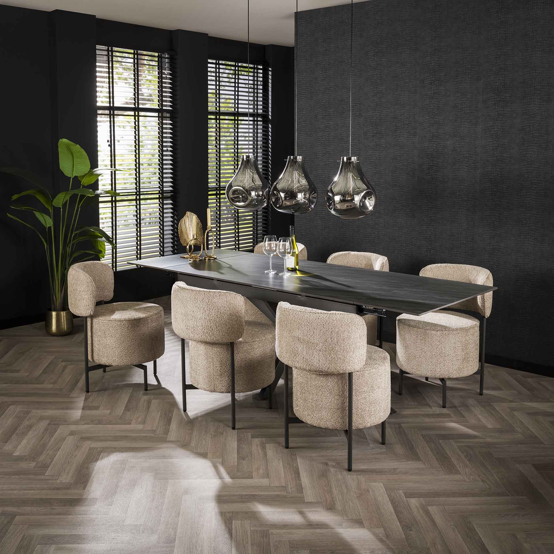 Add style and comfort to your dining room with our beautiful Bouclé Swivel Chair. This chair is not only rotatable but also offers a luxurious appearance thanks to the high-quality bouclé fabric in a warm sand color.