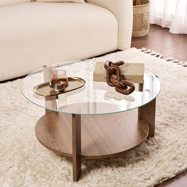 Cairo Coffee Table Round Ø75 cm Walnut - Glass 75x75x40 cm