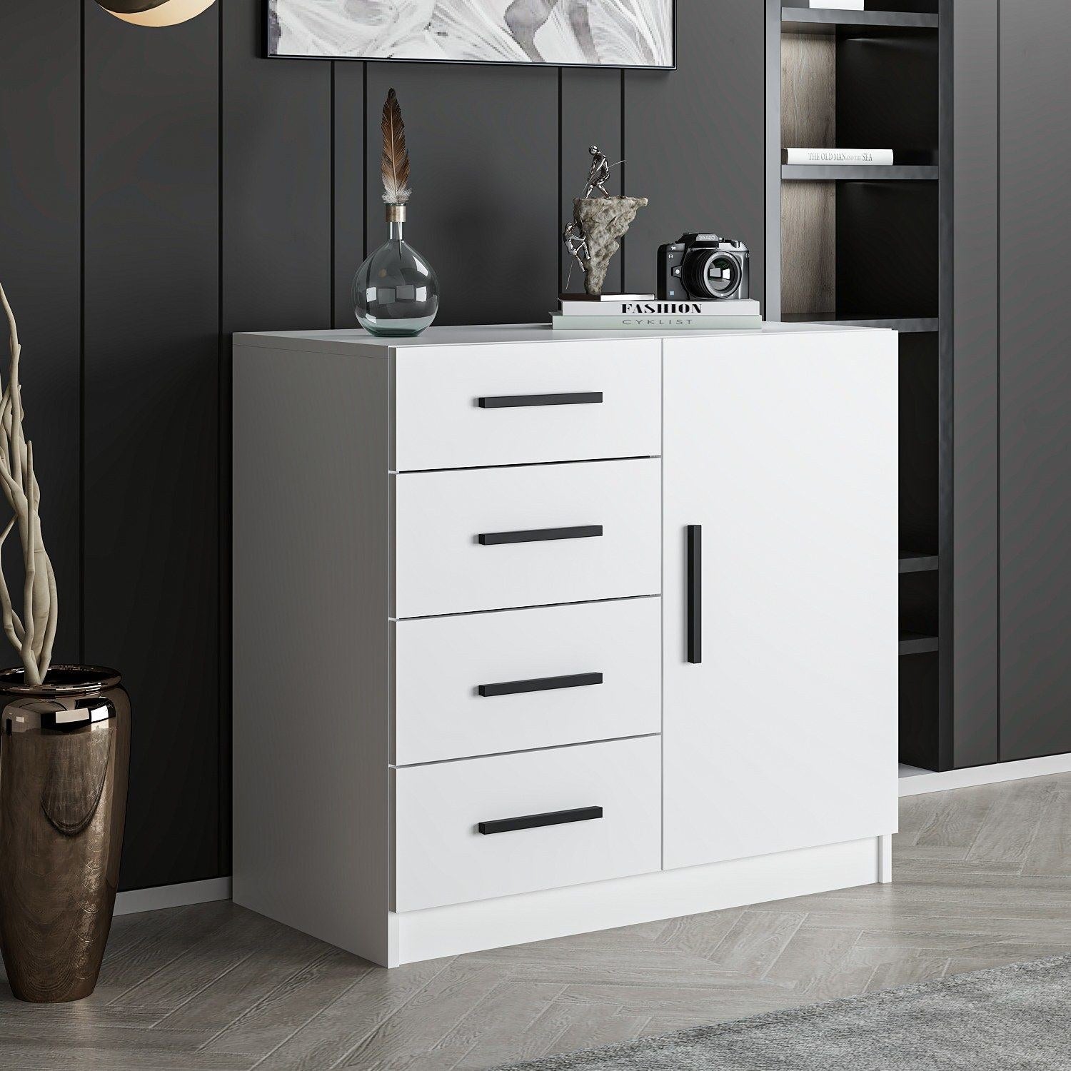 Description and specifications of Chest of drawers bare white melamine 90x85x47 cm