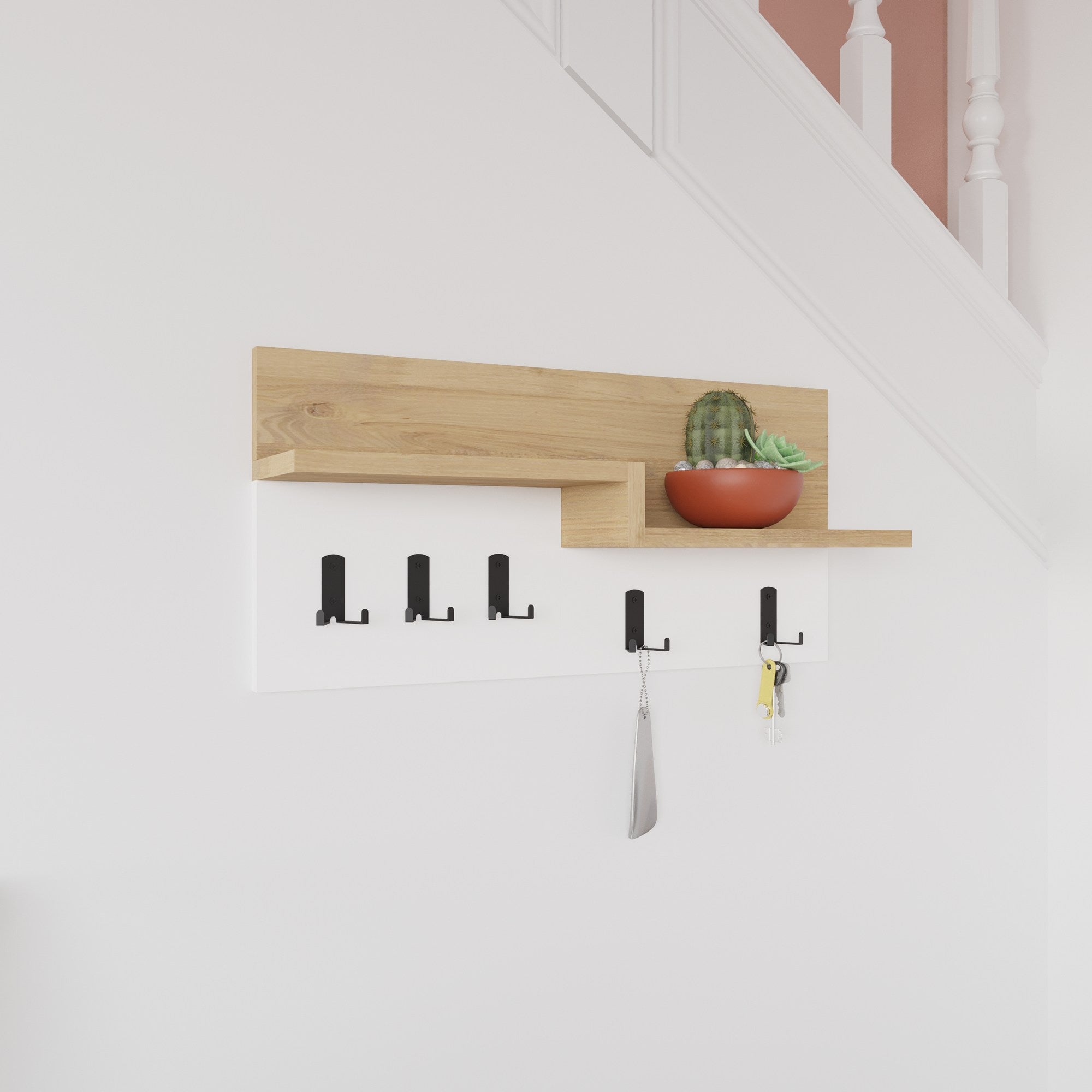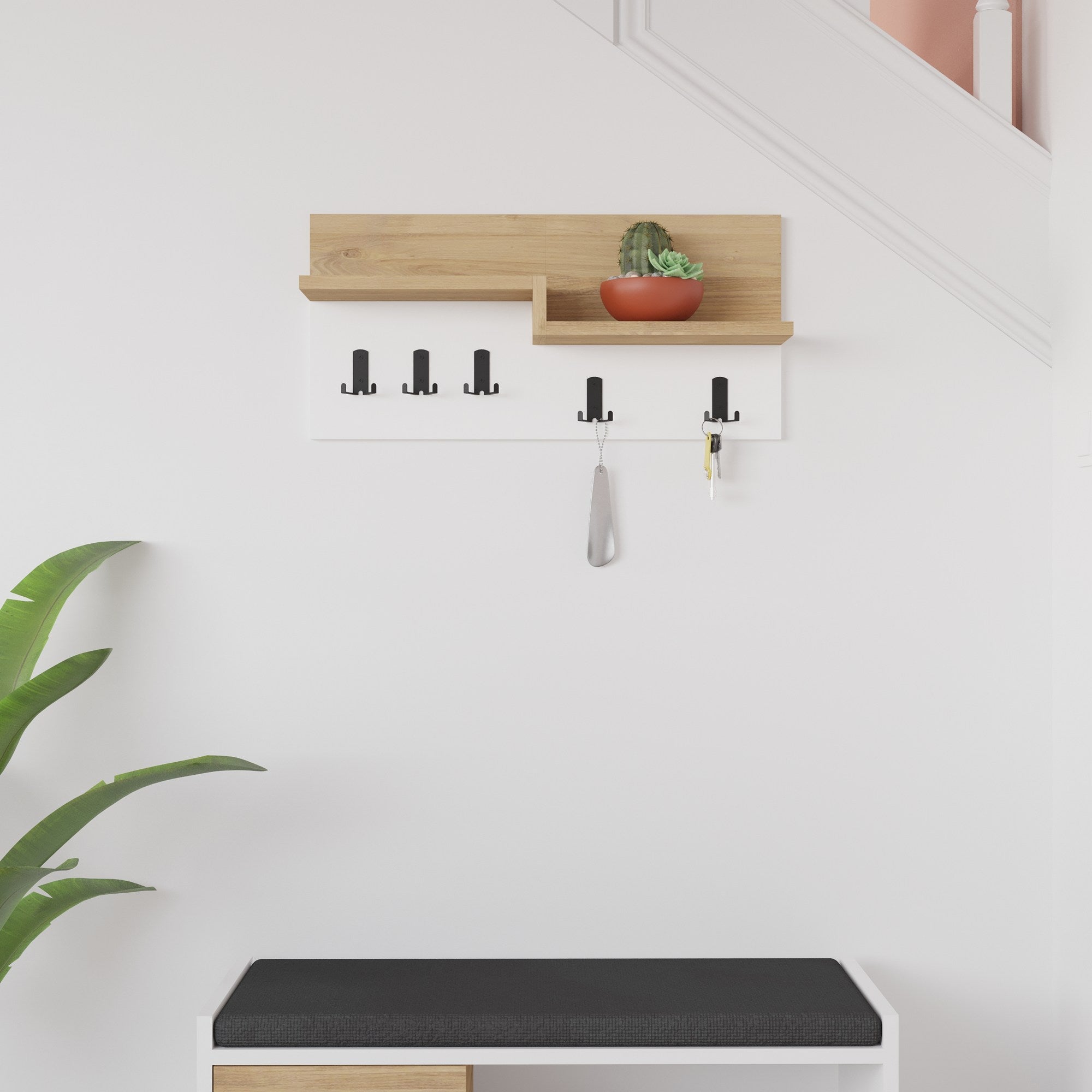 Coat rack 5-Hook White, Oak Melamine - 65 cm