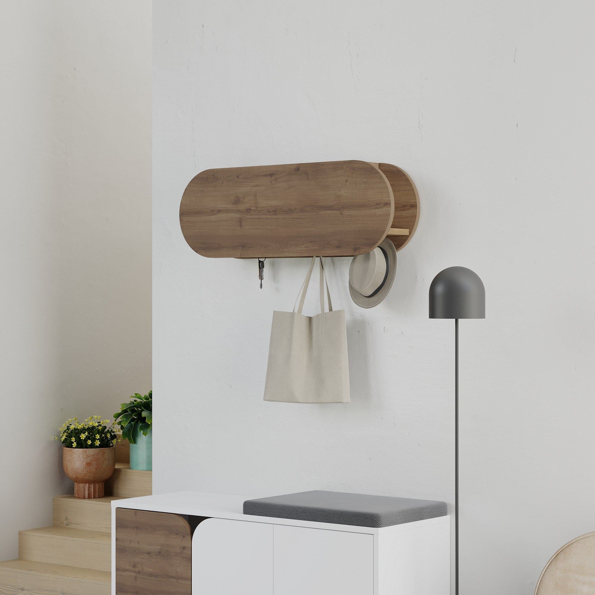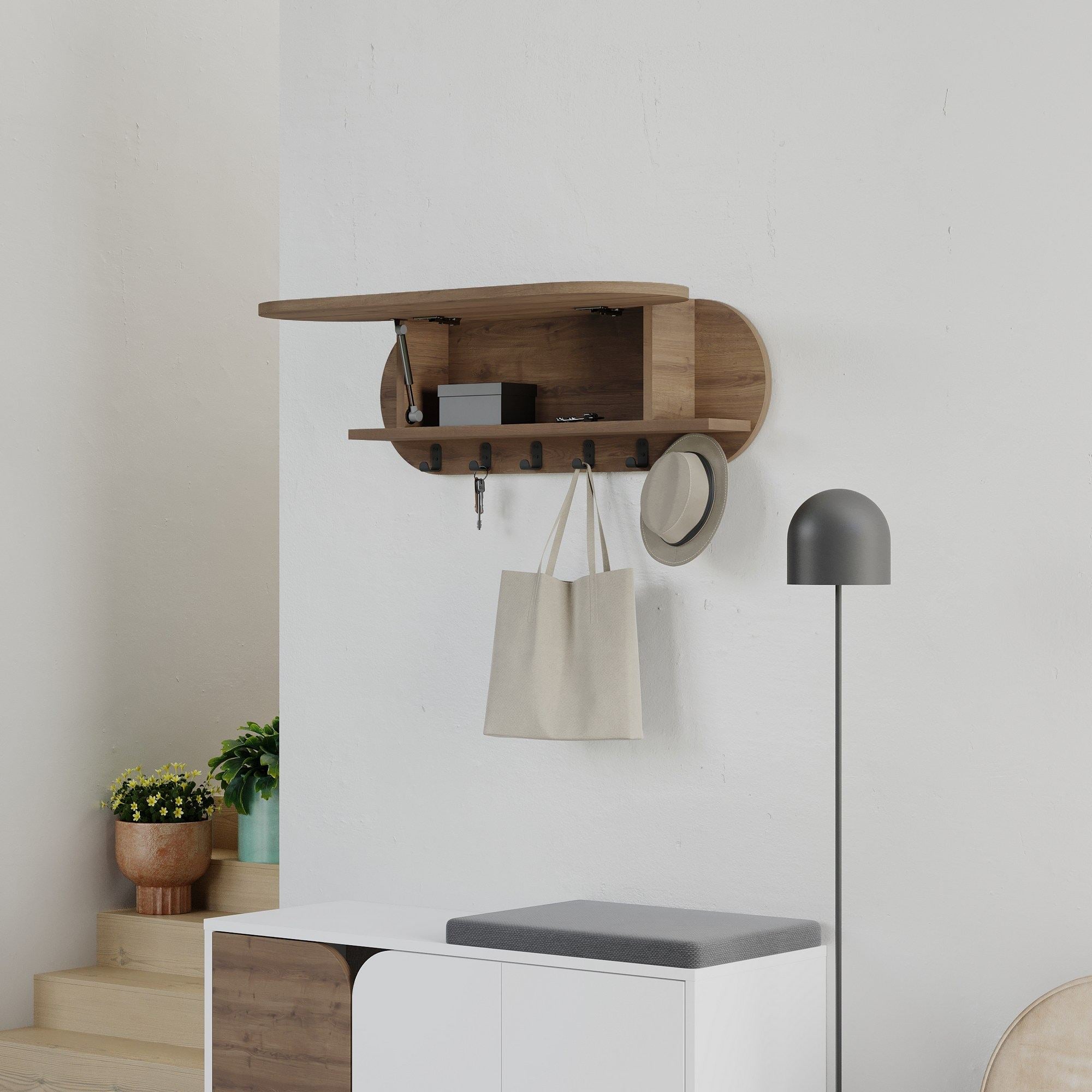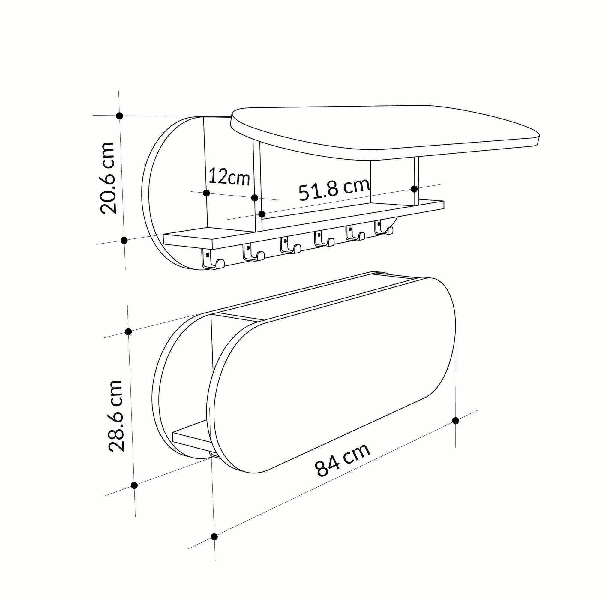 Coat Rack Oval 6-Hook - Hitit - 84x29 cm - With Compartment
