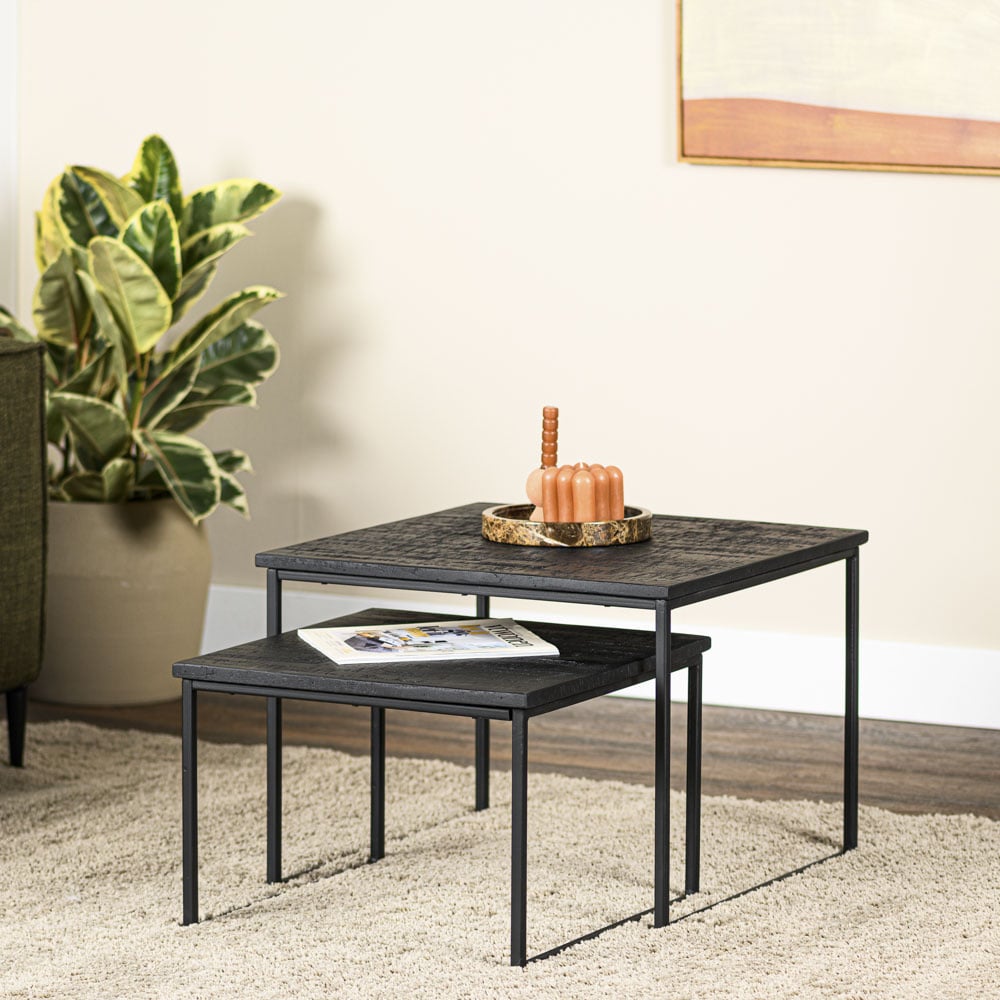 Coffee table set Menthe contains a beautiful black design and is a picture for the eye. The tables can be used excellently as a set, but they also find a place in your living room separately from each other!