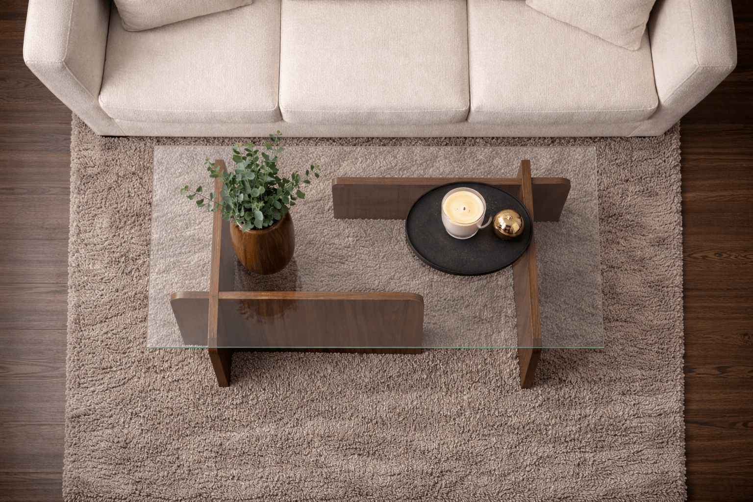 Transform your living room into a stylish and refined space with our beautiful coffee table. Made of 100% tempered glass and a frame of 100% melamine, this coffee table exudes elegance and modernity. The sleek design and walnut color add a touch of warmth and luxury to any room.