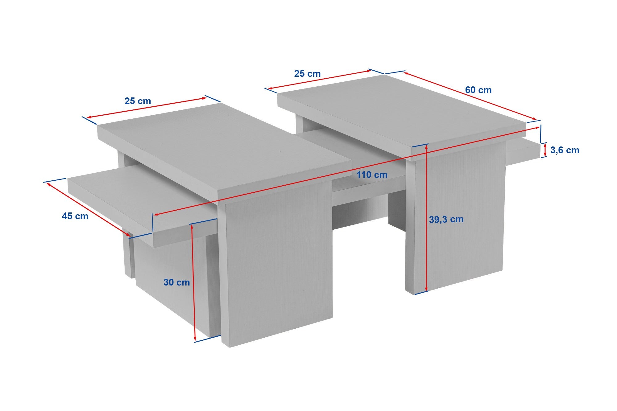 This coffee table is made of 100% melamine and is not only stylish but also durable and long-lasting. The thickness of 18mm ensures stability and sturdiness, while the generous dimensions of 110cm width, 41.5cm height, and 45cm depth provide ample space for books, magazines, and decorative items.