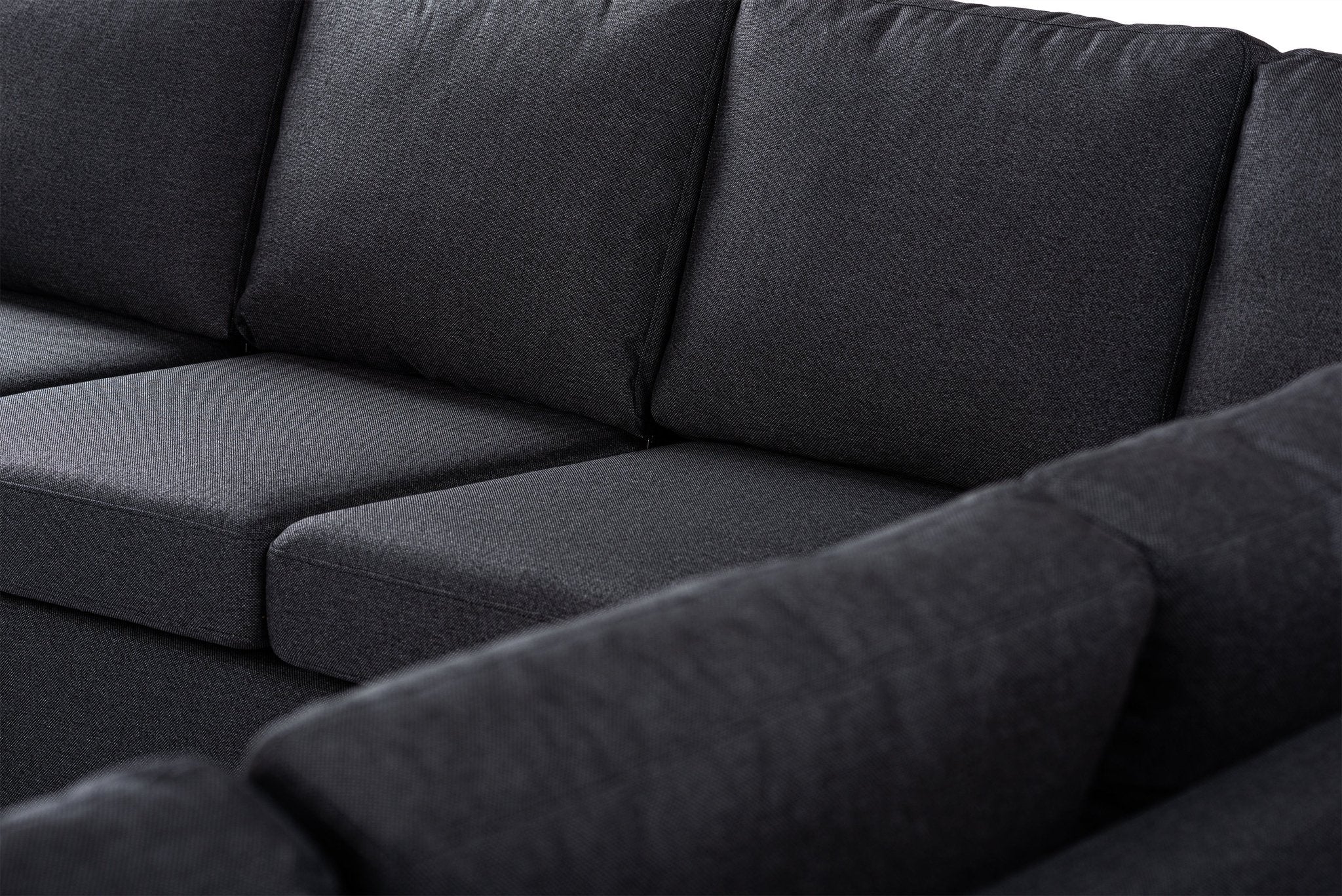 Description and specifications of Corner sofa anthracite fabric - 7-seater - 345 x 285 cm - Blake