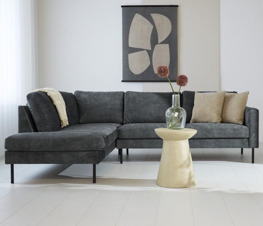 This industrial corner sofa has space for the whole family! The metal legs combined with the fine fabric give the sofa a warm appearance. The high-quality filling makes the Gaya a comfortable sofa to sink into!