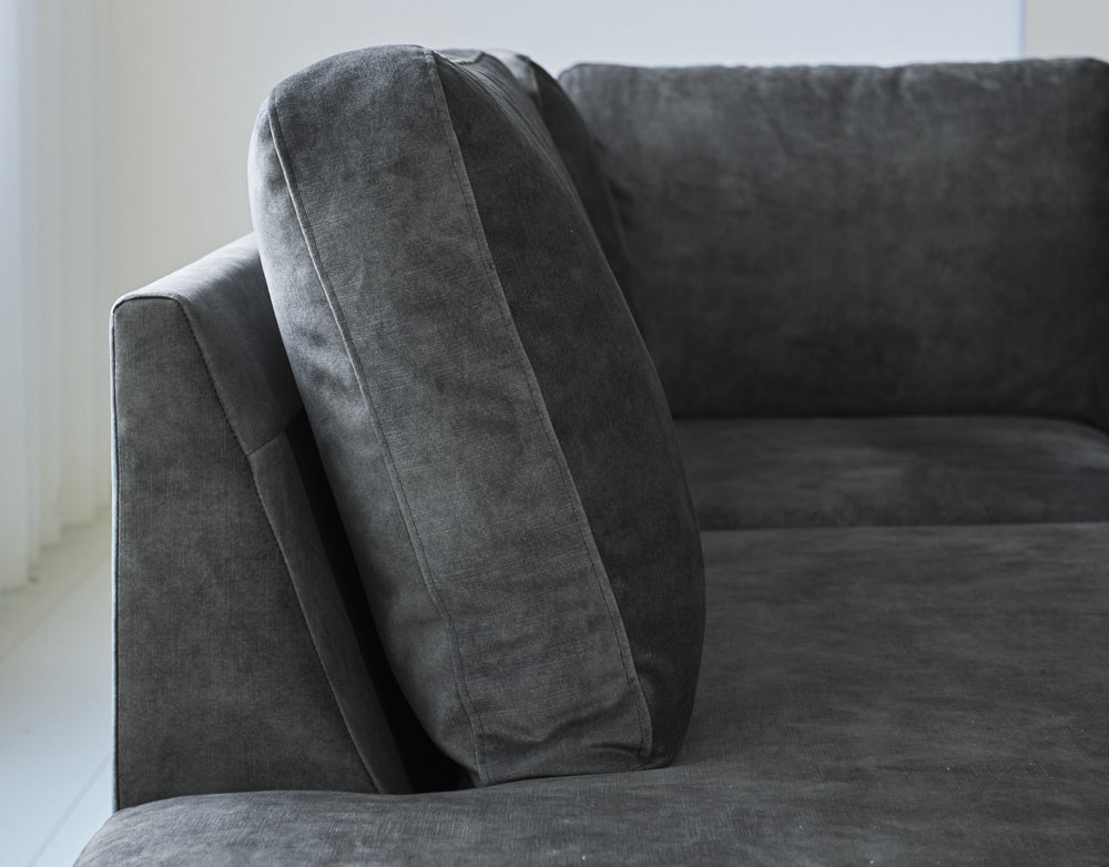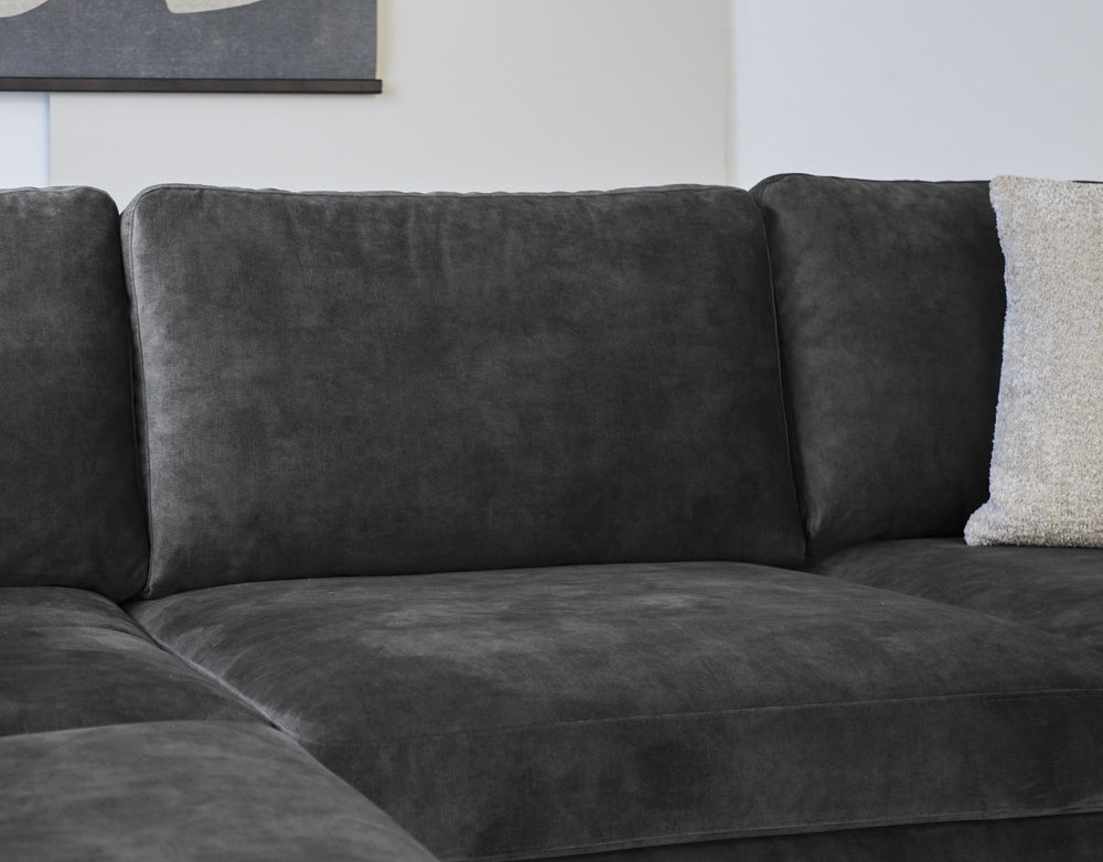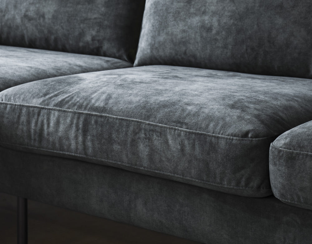 The Gaya corner sofa is upholstered with velvet. Velvet is a type of fabric that originated in Asia and came to Europe around 1400. In velvet, small loops are woven, creating a soft, shiny fabric on top.