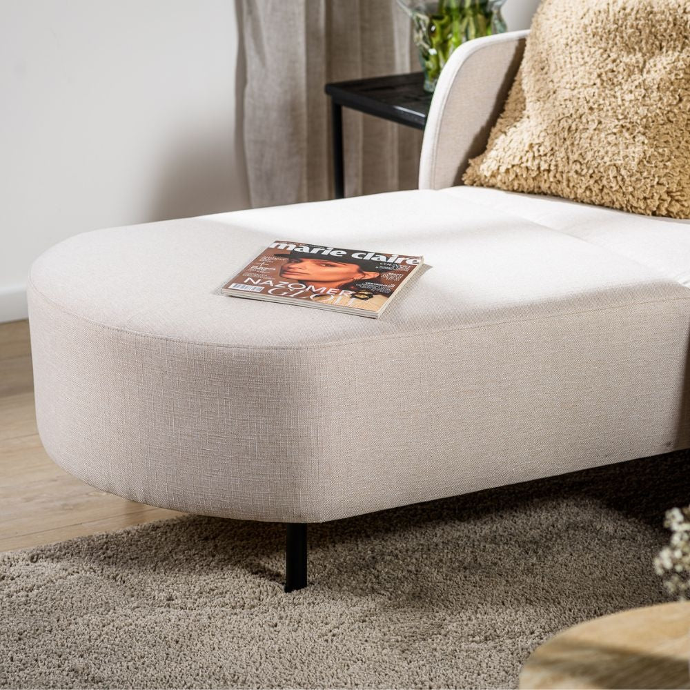 3-seater corner sofa Jula is a unique sofa with a modern design. The Longchair has a round shape and is therefore slightly different from other chaise longue corner sofas. Corner benches with round shapes are completely trendy. Furthermore, corner sofa Jula has a sleek and timeless design and is easy to combine with many different living styles; Modern, Scandinavian, basic. The sofa offers both sitting and lounge space. Due to the high slender black metal legs, this sofa makes your living room look spacious and airy. The sofa is therefore also suitable for somewhat smaller living rooms.