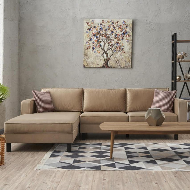 Enjoy the luxurious embrace of our corner sofa, carefully crafted with a sturdy beechwood frame for long-lasting durability. The 100% polyester/velvet fabric adds a touch of opulence and envelops you in softness with every seat.