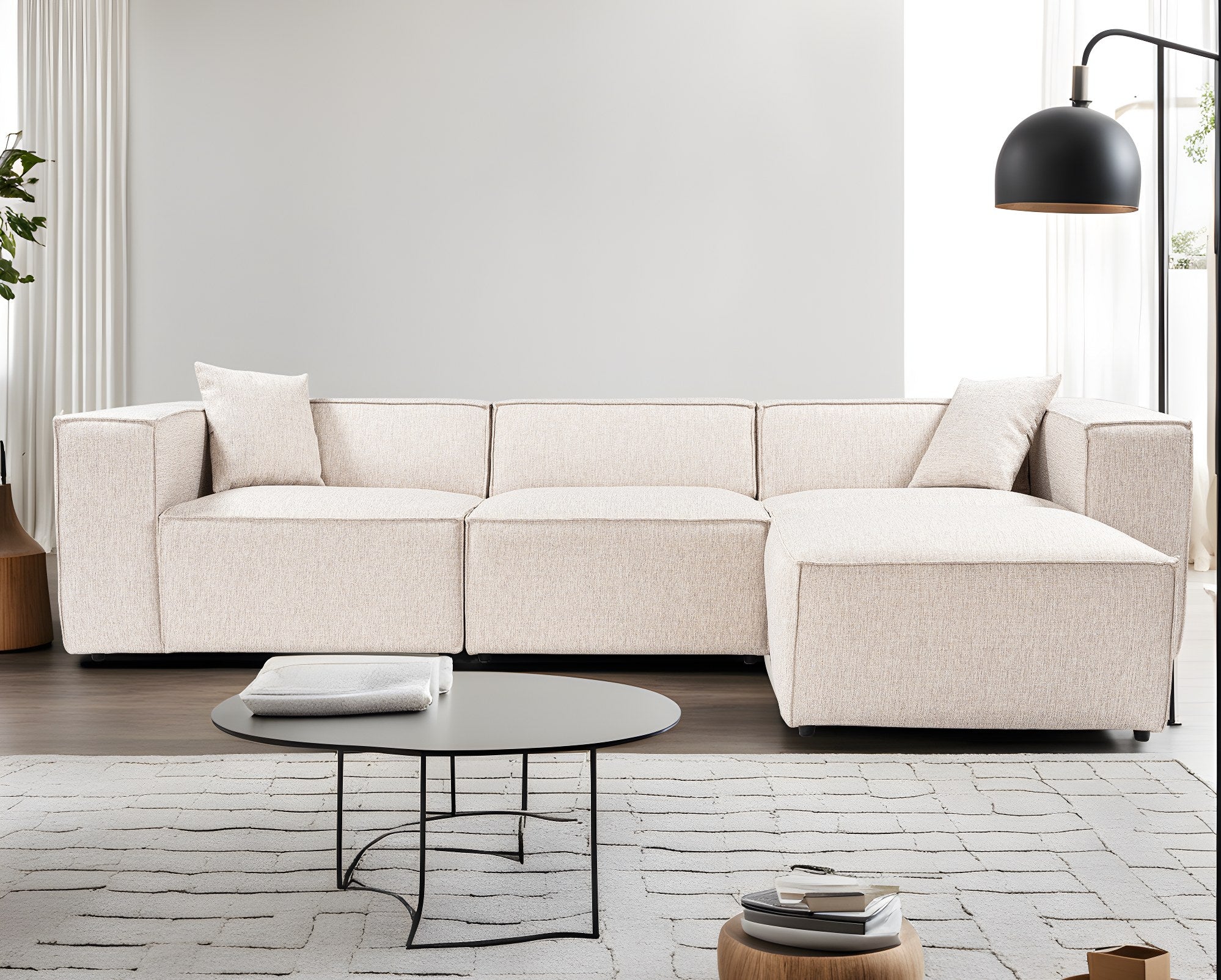 Unparalleled comfort and durabilityOur corner sofa has been made with extreme precision and has a sturdy frame of 100% hornbeam, which guarantees sustainability and stability for a long time. Bag away in the plush pillows, filled with 32 DNS foam, which offer unparalleled comfort and support. The seat height of 40 cm and sitting depth of 74 cm ensure the perfect balance between relaxation and posture.