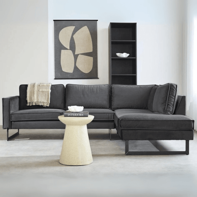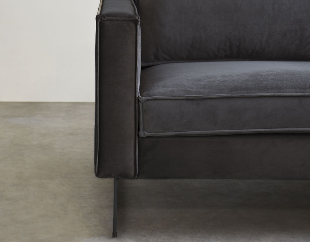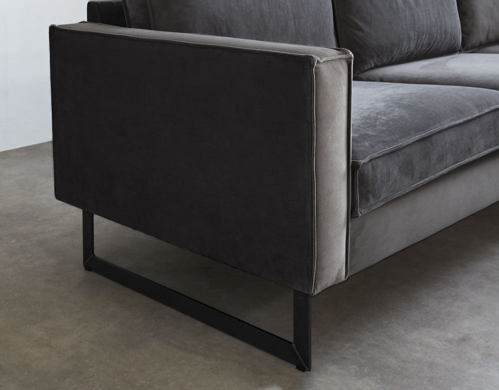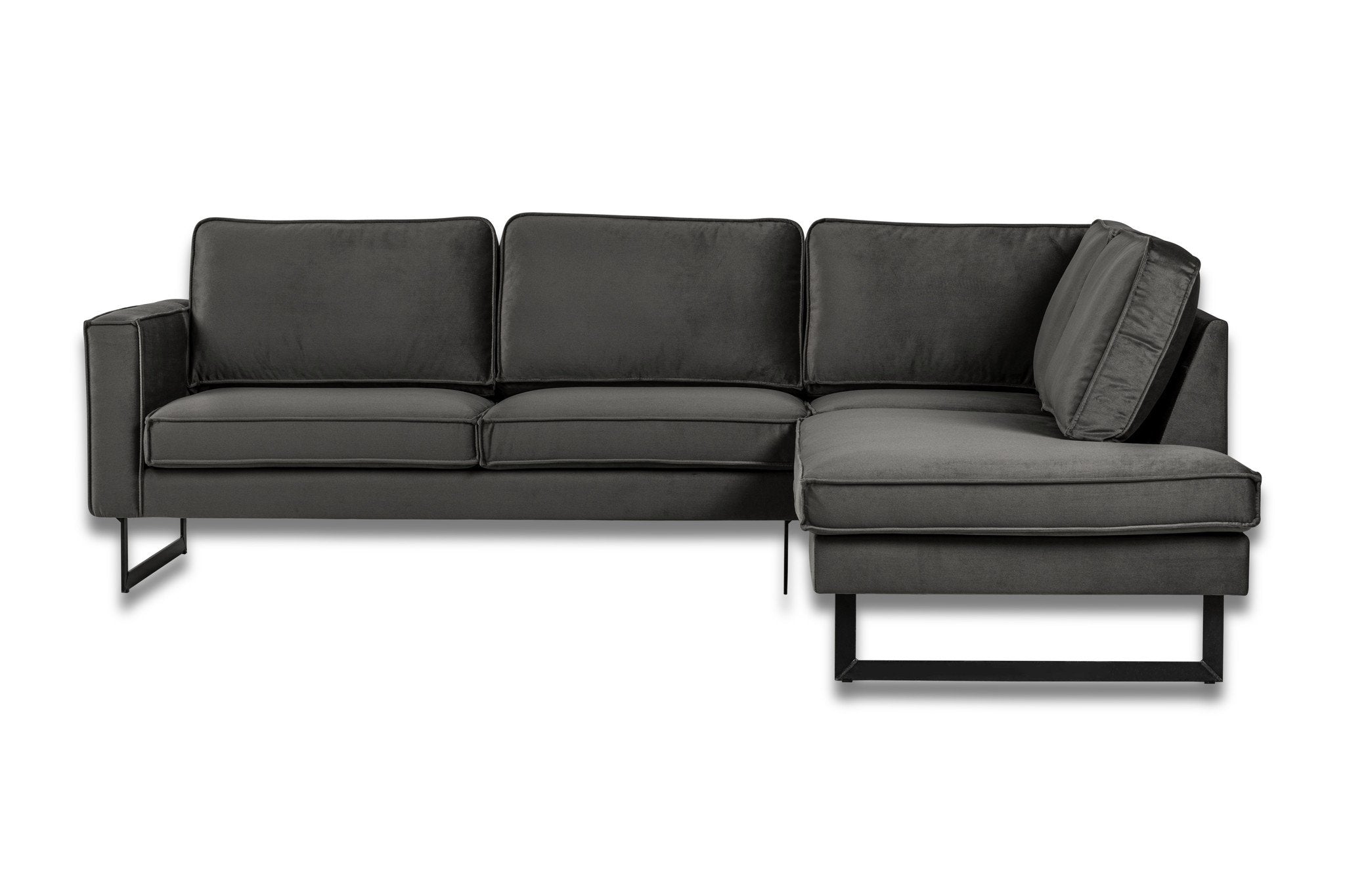 The corner sofa Quinn is a valuable addition to any interior. The corner sofa is very comfortable, stylish, and industrial thanks to the combination of the black metal legs and the matte velvet. Velvet sofas can be easily combined with different materials and interior styles and also create a warm atmosphere. The corner sofa Quinn has wide seats where you can easily sit with multiple people.
