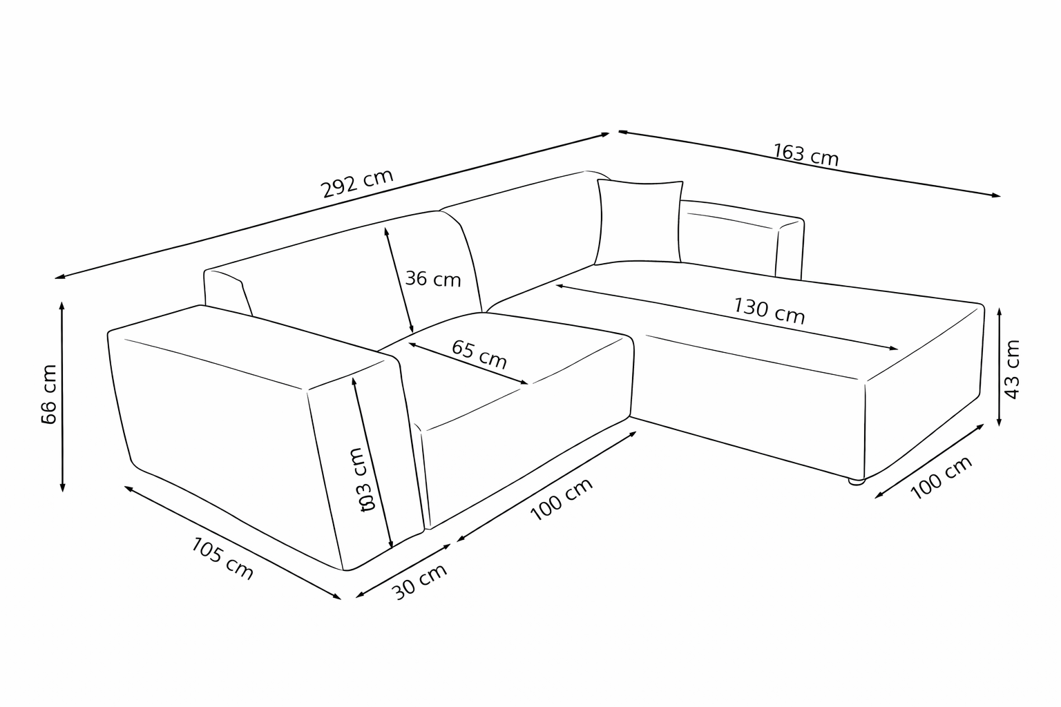 Fits in any living room (Left & Right mountable) Unsure whether the corner should be on the left or right? Moving soon? No problem. Wayne is buildable on both sides. This means you can choose during assembly which side to place the lounging area (the ottoman). So you are always flexible, regardless of how your living room is arranged.