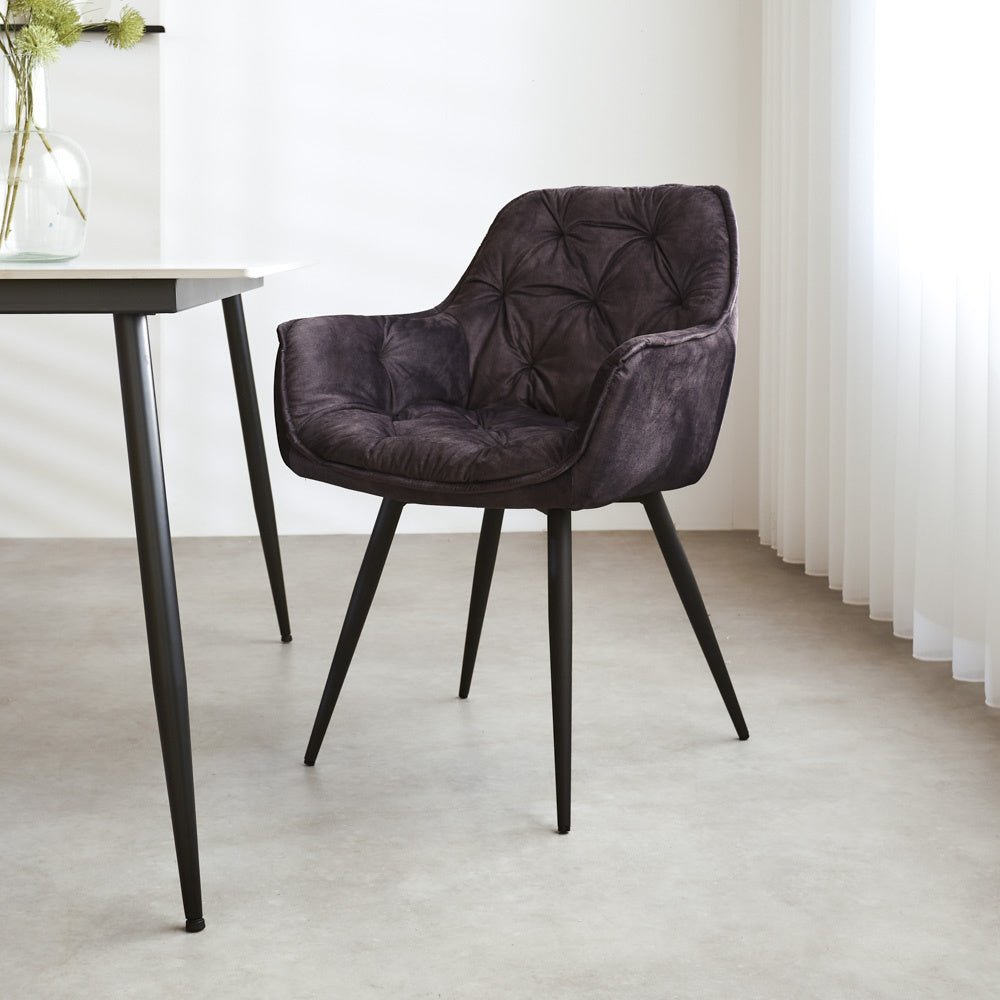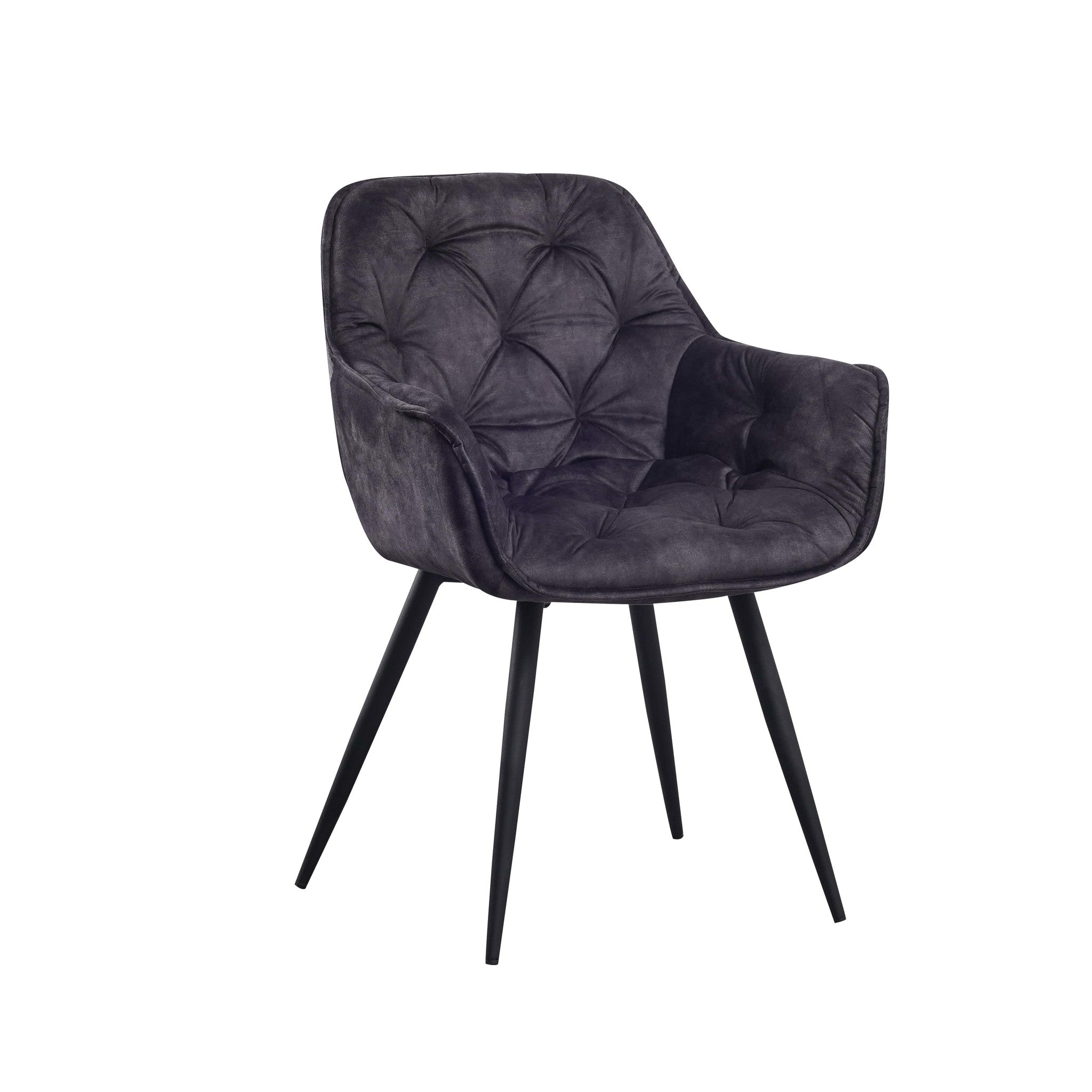 Chic Dining Chair Velvet Anthracite Fabric Audrey - With Armrests