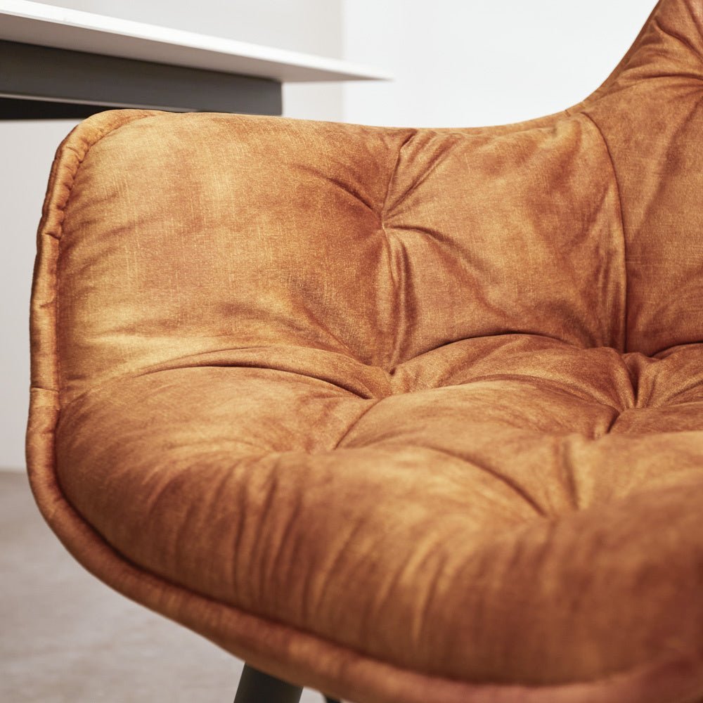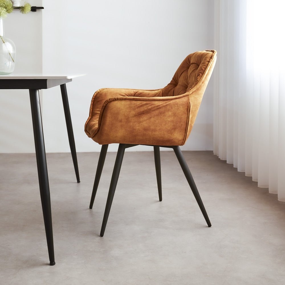 Chic Dining Chair Velvet Ochre Yellow Fabric Audrey - With Armrests