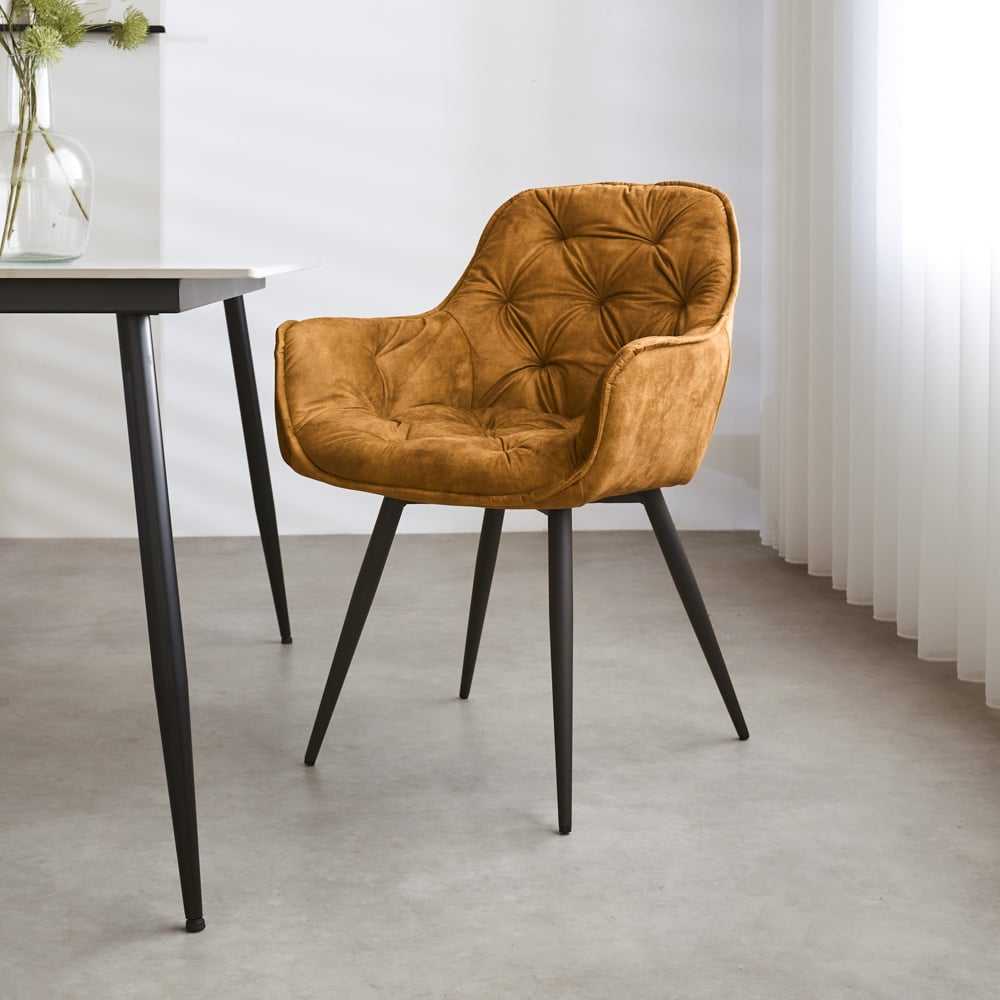Description and specifications of Chic Dining Chair Velvet Ochre Yellow Fabric Audrey - With Armrests