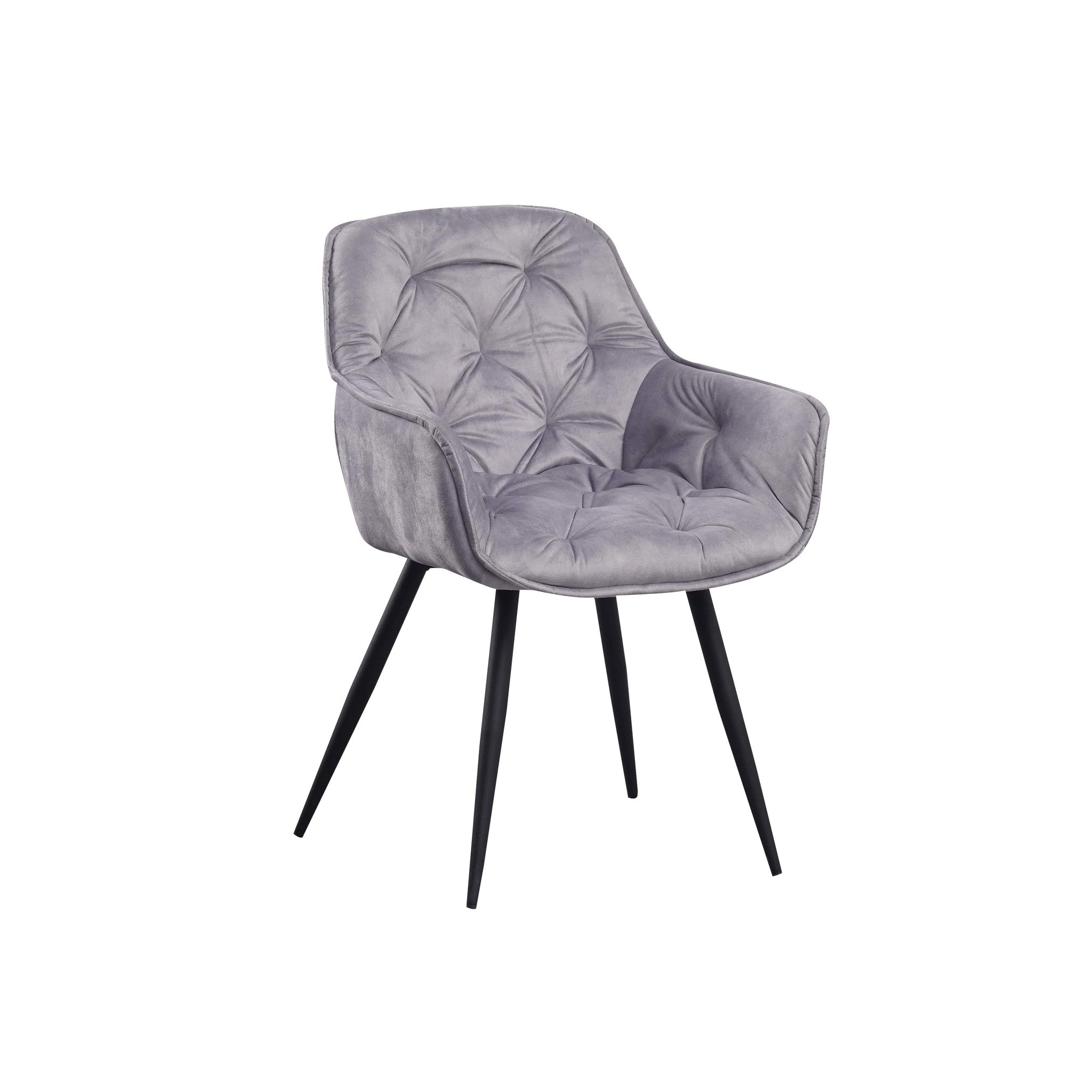 Chic Dining Chair Velvet Grey Fabric Audrey - With Armrests
