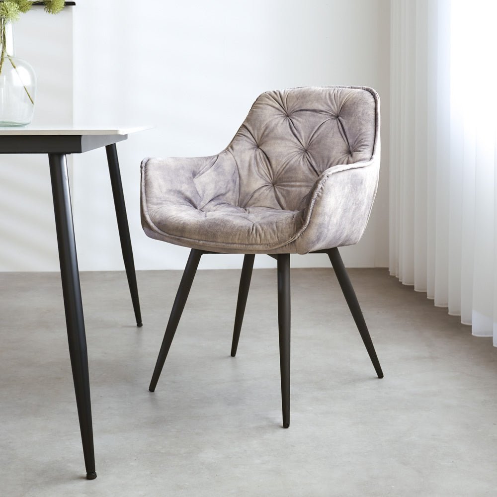 Description and specifications of Chic Dining Chair Velvet Grey Fabric Audrey - With Armrests