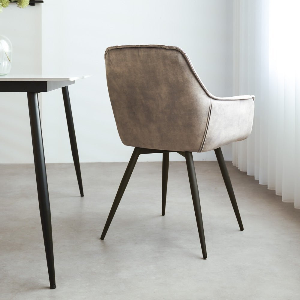 The dining chair is upholstered with velvet. Velvet is a type of fabric that originated in Asia and was introduced to Europe around 1400. In velvet, small loops are woven, creating a soft, shiny fabric on the surface.