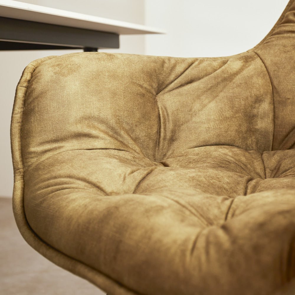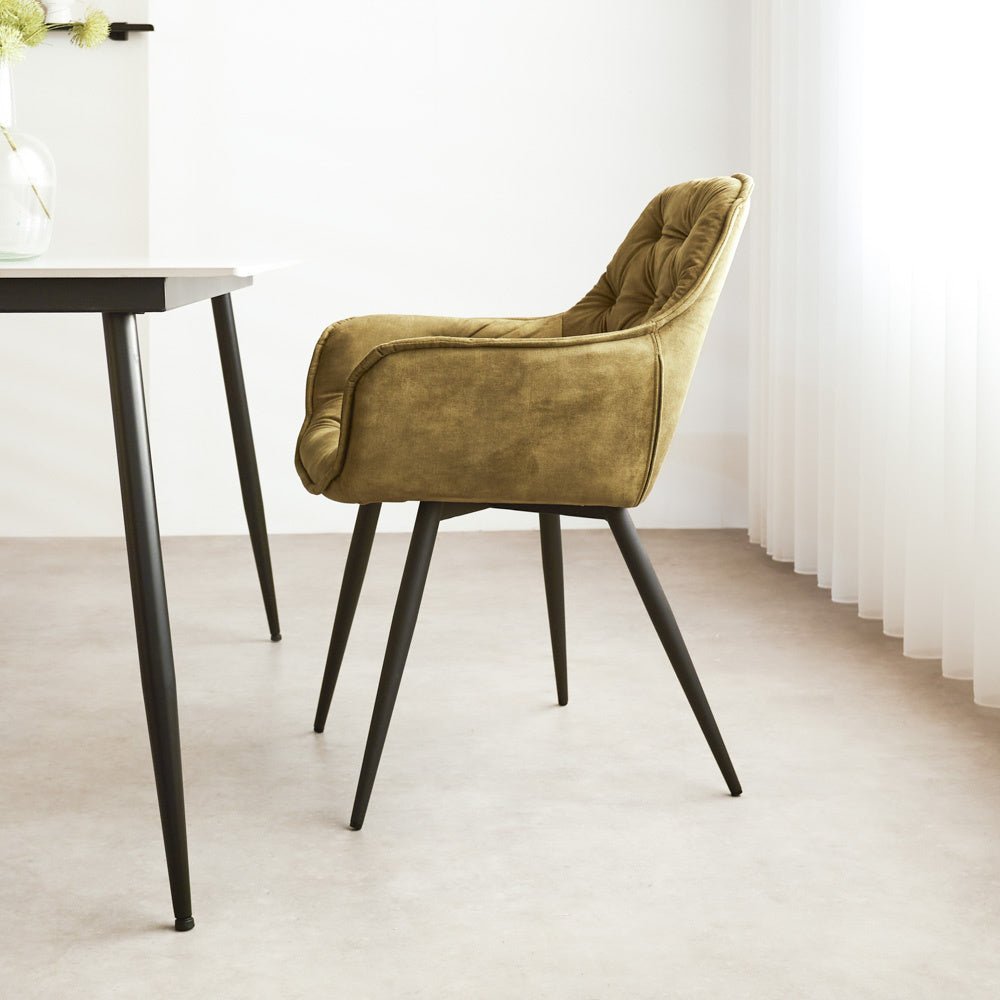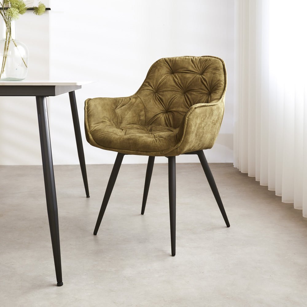 Dining chair with armrests Audrey velvet green is a perfect addition to your dining room with its bold and unique look! With the Audrey, you never have to worry about discomfort from prolonged sitting. Audrey comes in many colors so you can place this beautiful velvet chair in any interior! View the entire Audrey collection here!