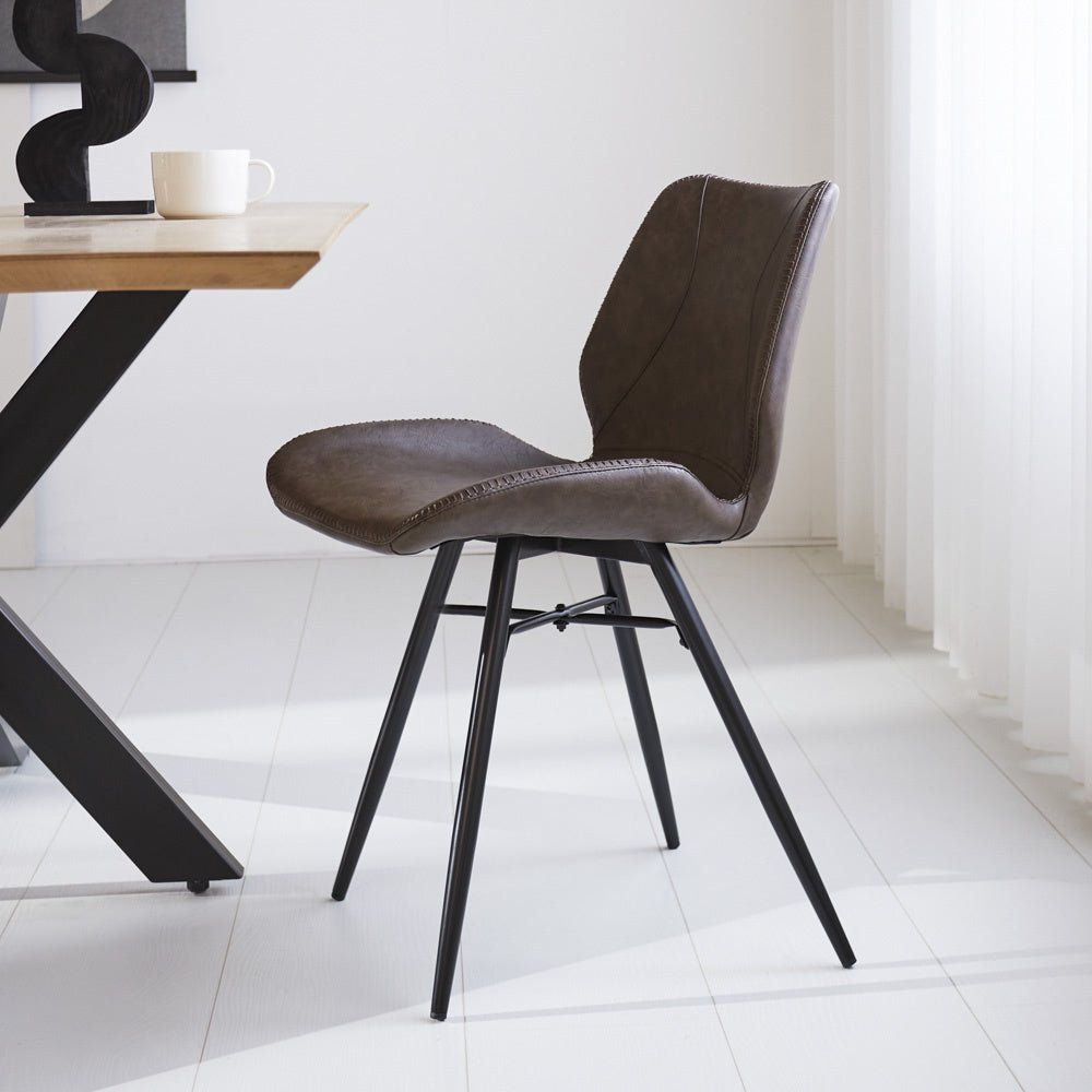Beau Industrial Dining Chair Taupe Faux Leather - Without Armrests