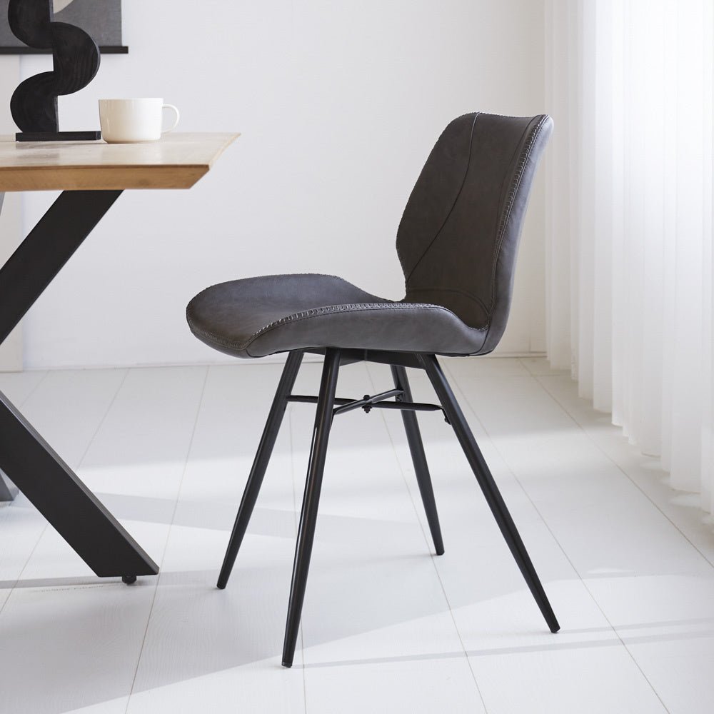Beau Industrial Dining Chair Anthracite Faux Leather - Without Armrests