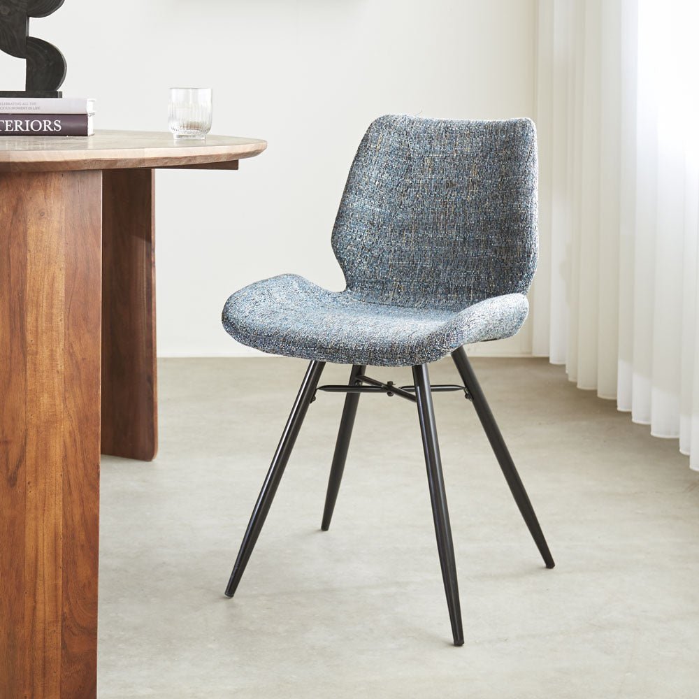 Beau Dining Chair Blue Chenille Fabric - Without Armrests