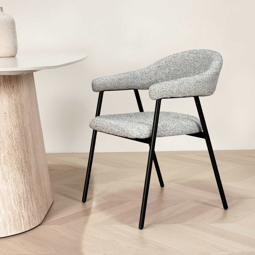 Since bouclé usually comes in calm, neutral tones, it seamlessly fits various interior styles and effortlessly combines with sleek or organic shapes. The material is durable by nature and retains its beautiful look even after prolonged use, making long dining sessions never feel uncomfortable. Do you want tranquility yet character in your interior? With bouclé, you choose timeless elegance and comfort in one.