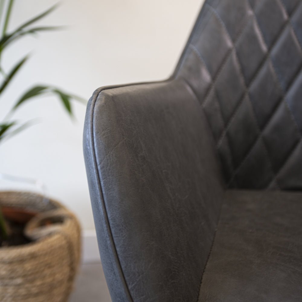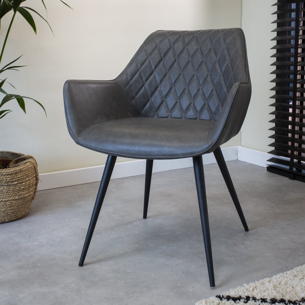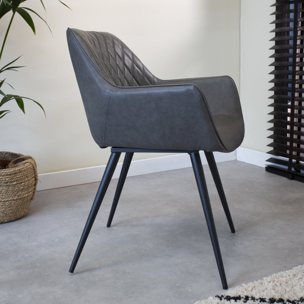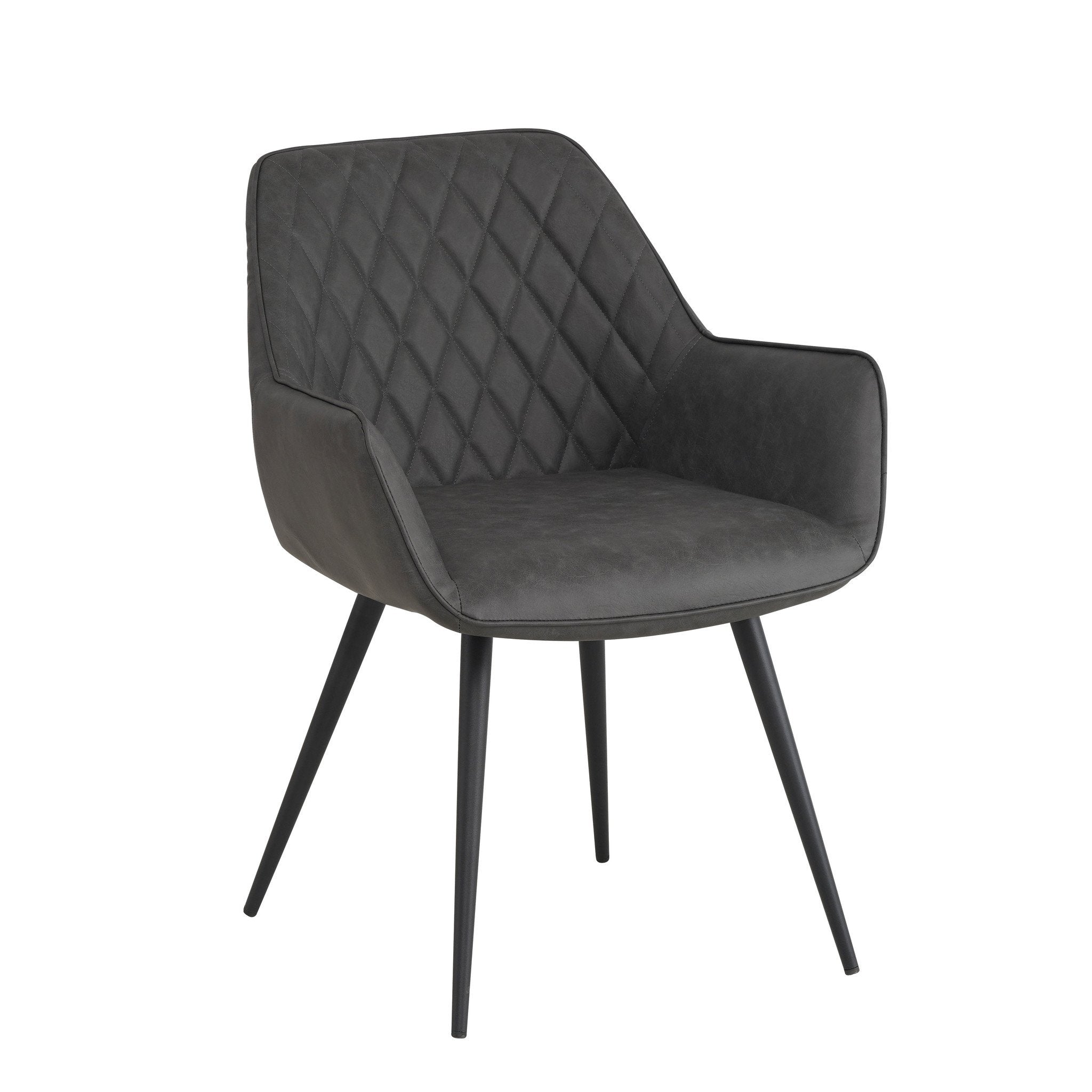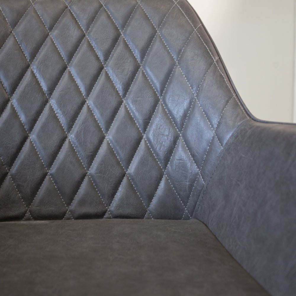 Industrial Dining Chair Anthracite Cara Faux Leather - Checked Pattern - With Armrest
