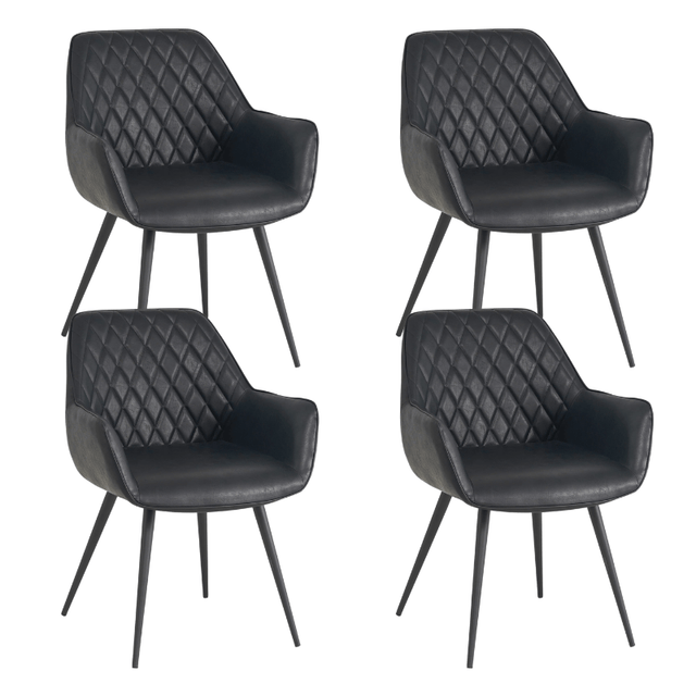 Industrial Dining Chair Black Cara Faux Leather - Checked Pattern - With Armrest