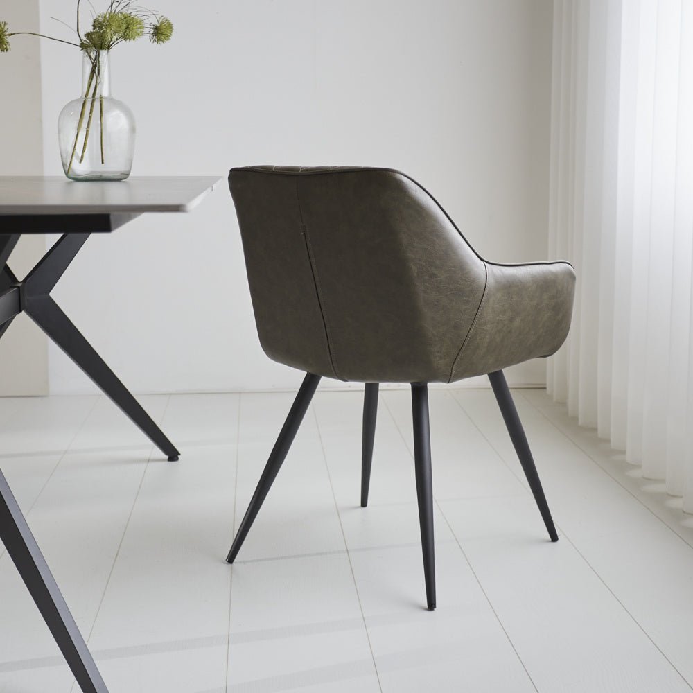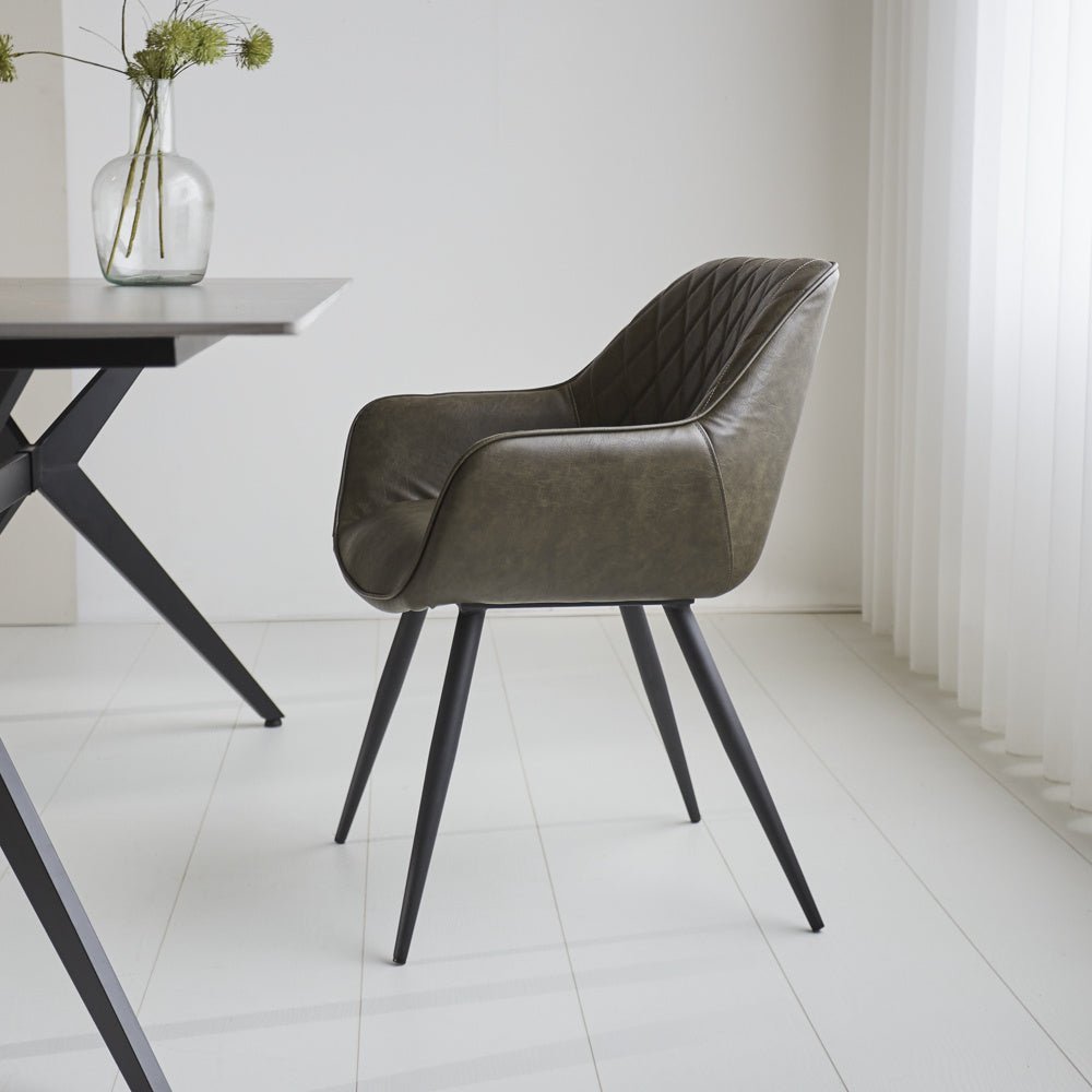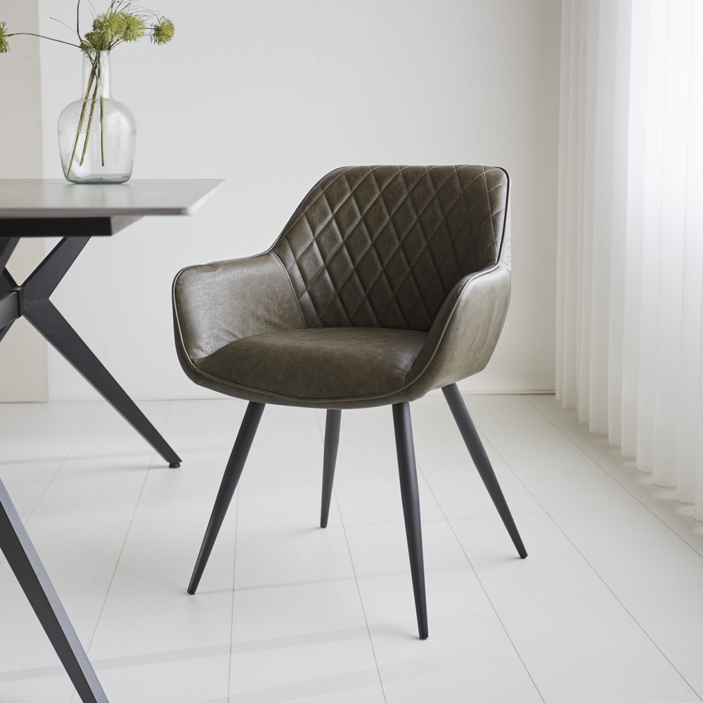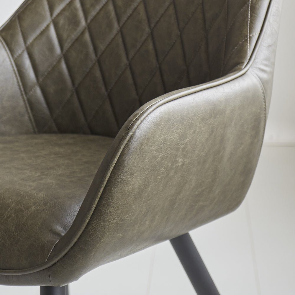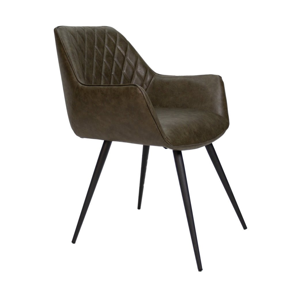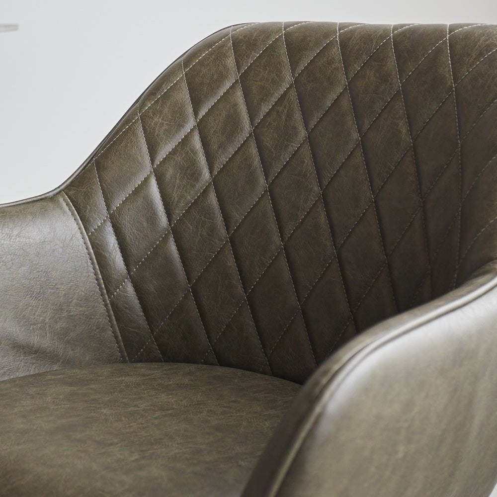 Industrial Dining Chair Green Cara Faux Leather - Checked Pattern - With Armrest