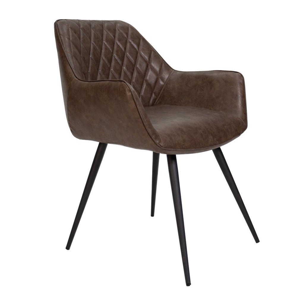 Description and specifications of Industrial Dining Chair Taupe Cara Faux Leather - Checked Pattern - With Armrest