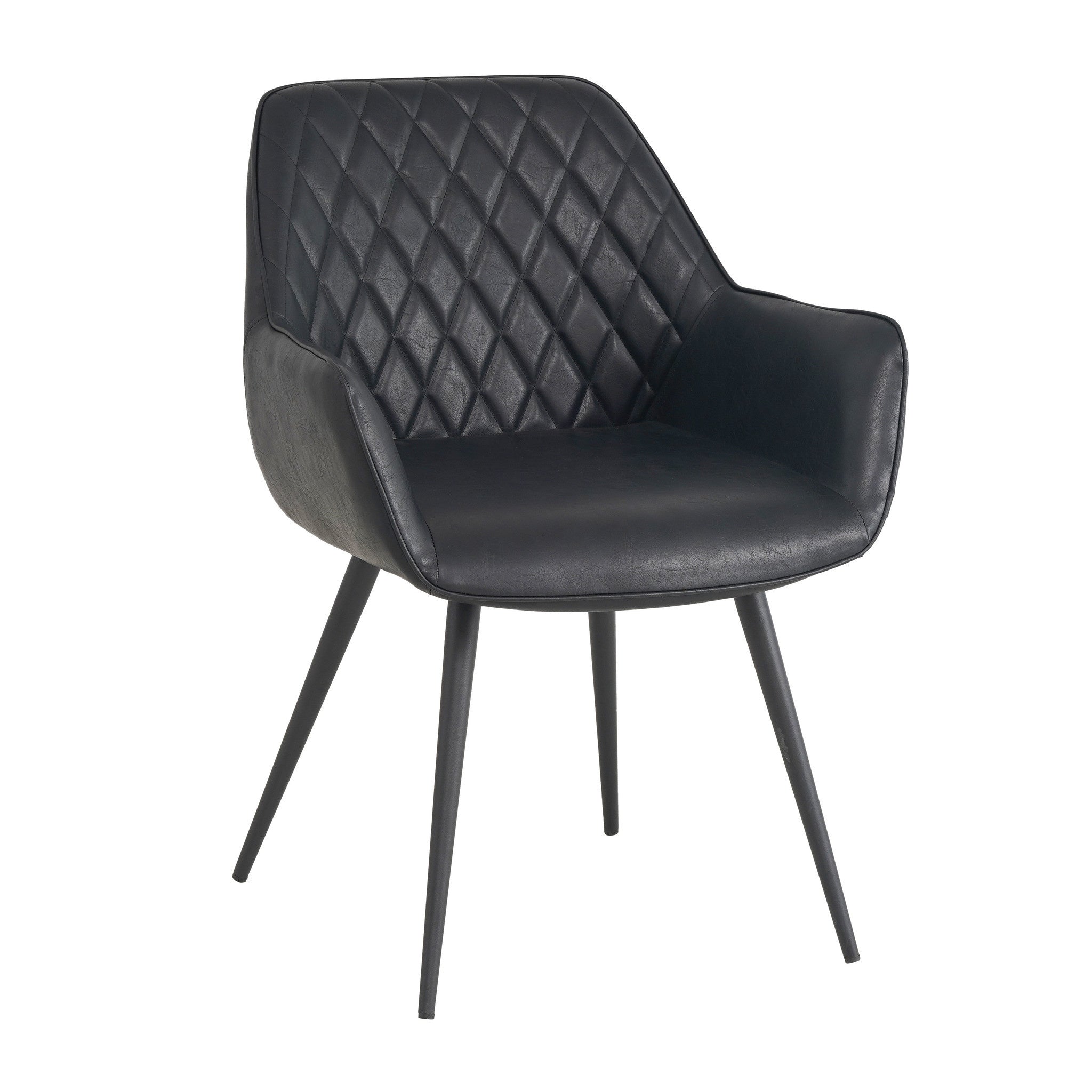Industrial Dining Chair Black Cara Faux Leather - Checked Pattern - With Armrest