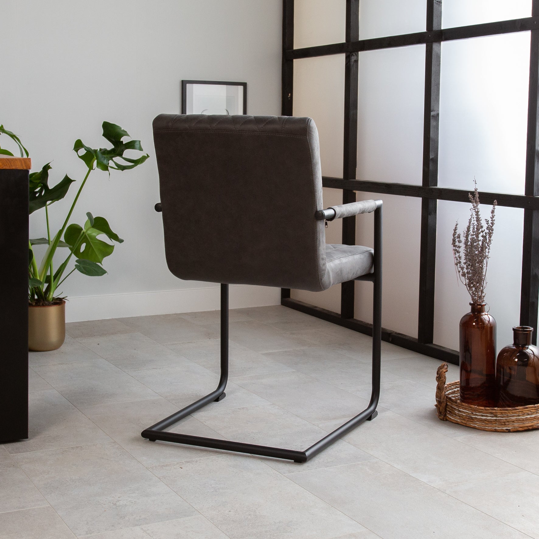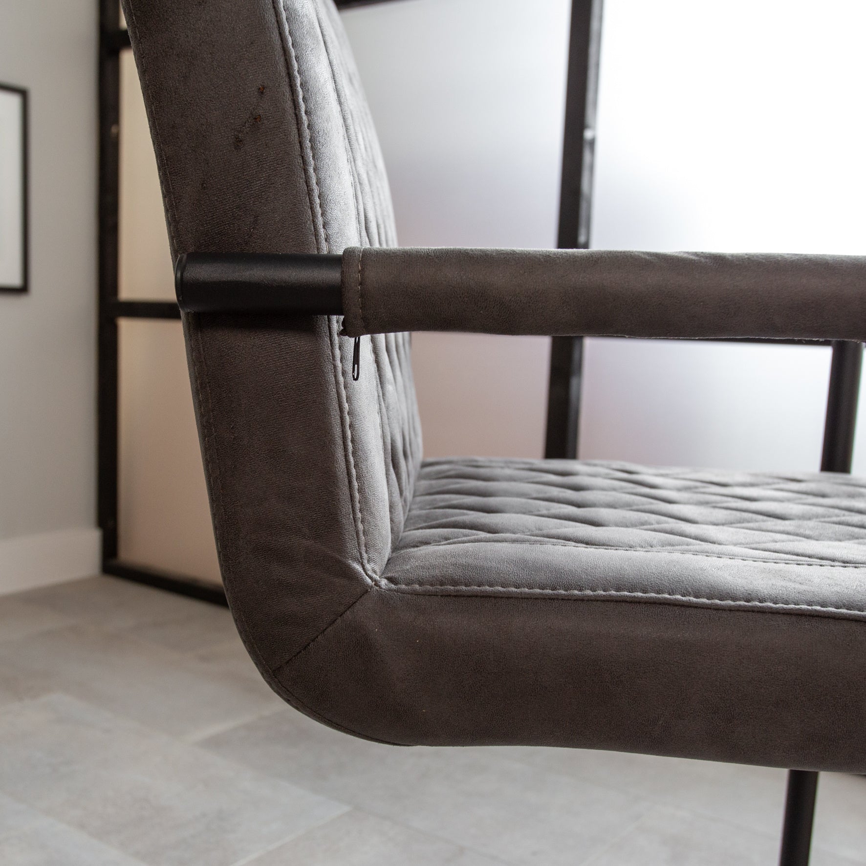 Industrial Dining Chair Anthracite Microfiber Fabric Dean - With Armrests